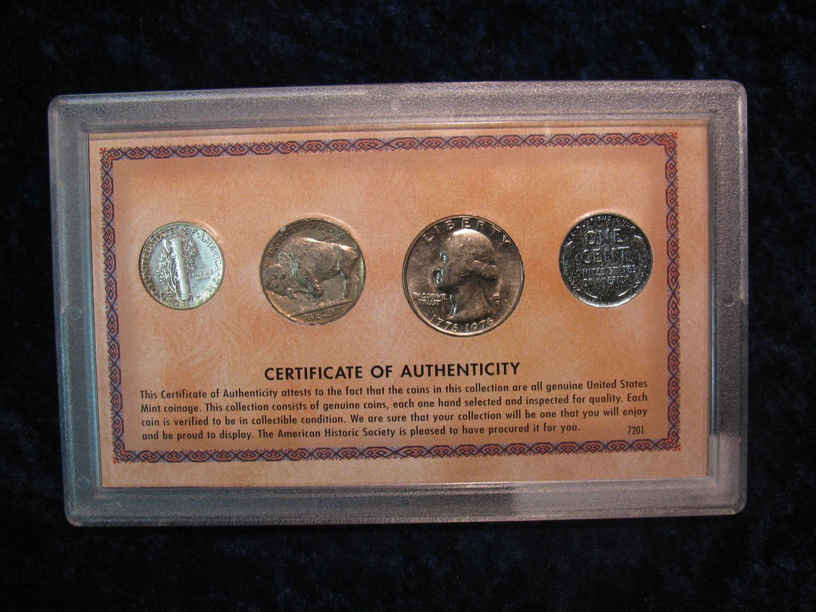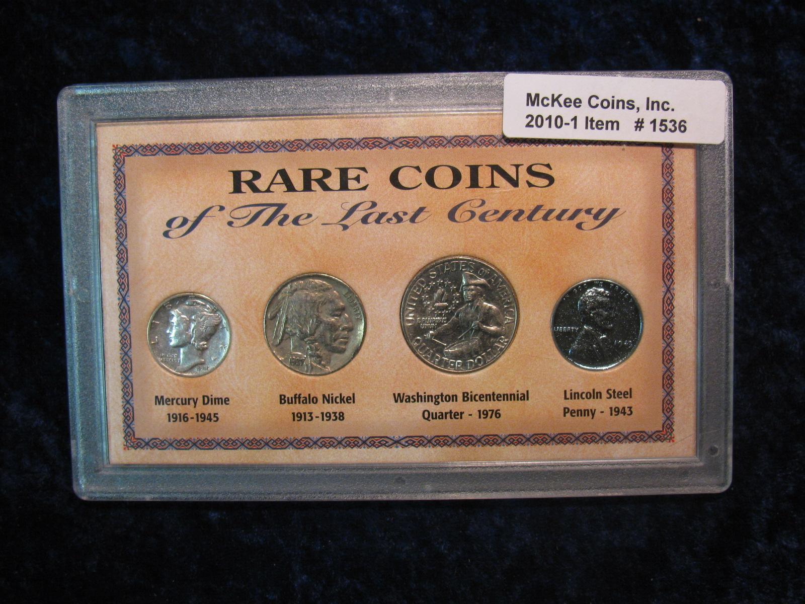 1536. Rare Coins Type Set Cent-Quarter Of the Last Century.1943 Cent, 1945 D Dime, 1937 Nickel & 1976 D Quarter.