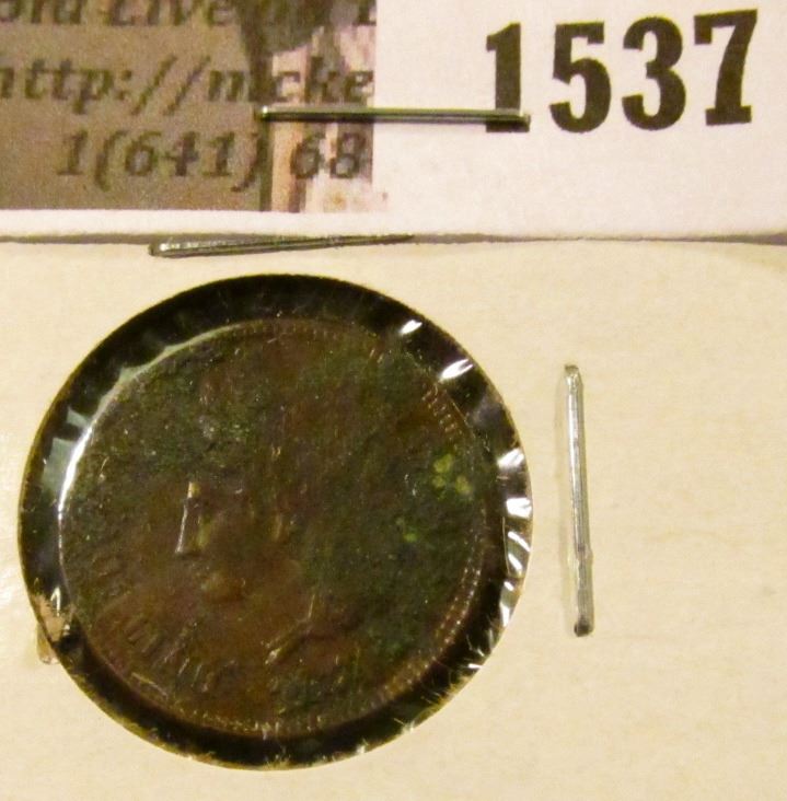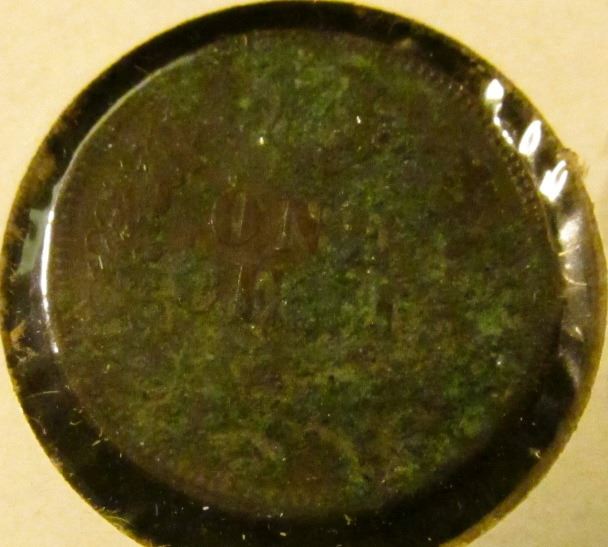 1537 . 1874 Indian Head Cent, EF, heavy corrosion.