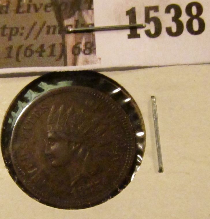 1538 . 1875 Indian Head Cent, VF, reverse corrosion.
