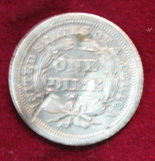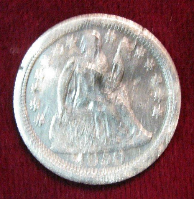1539. 1850 U.S. Seated Liberty Dime. F-12.Couple of Scratches and a slight bend.