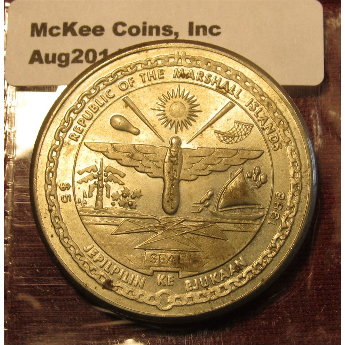 1539. 1988 Marshall Islands commemorative $5 coin – “Launch of Space Shuttle Discovery”