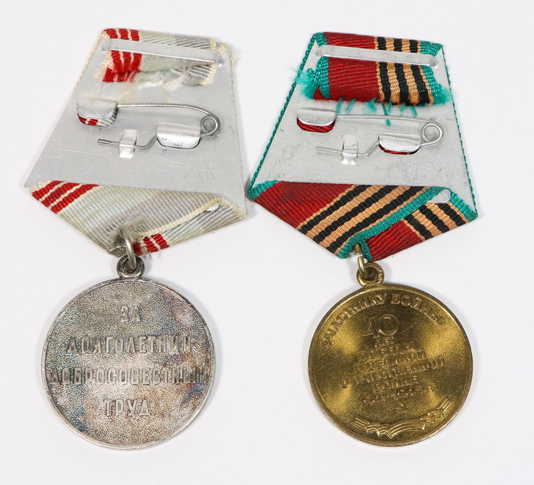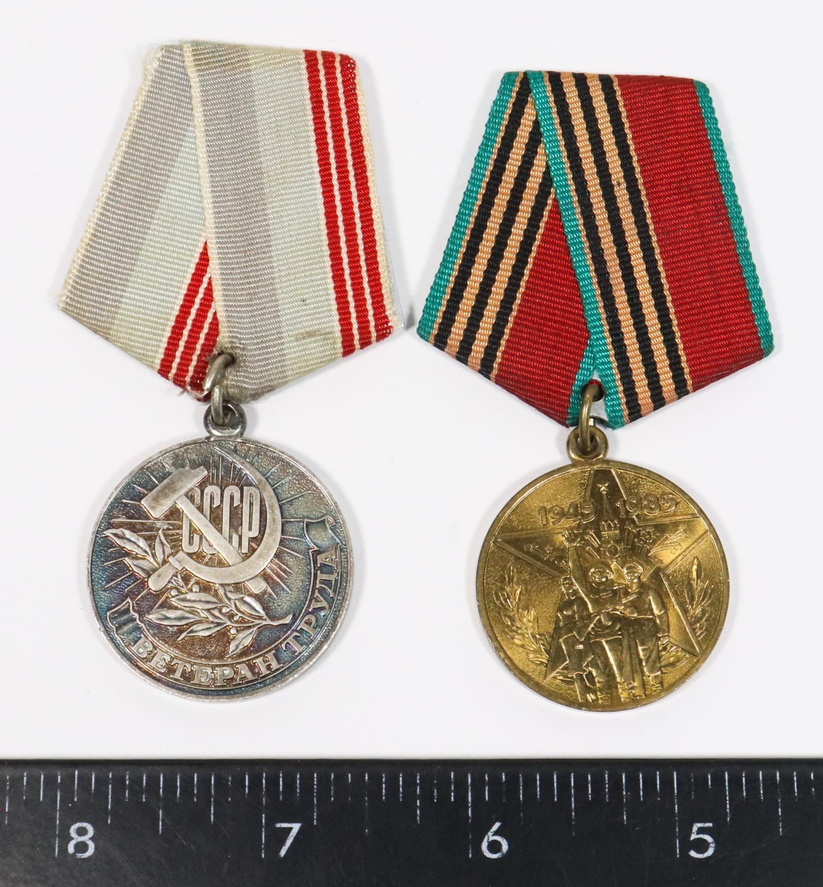 VETERAN OF LABOUR AND 1945-1985 MEDAL 40 YEARS OF VICTORY ANNIVERSARY OF GREAT PATRIOTIC WAR COMMINIST RUSSIA RUSSIAN SOVIET COLD WAR ERA