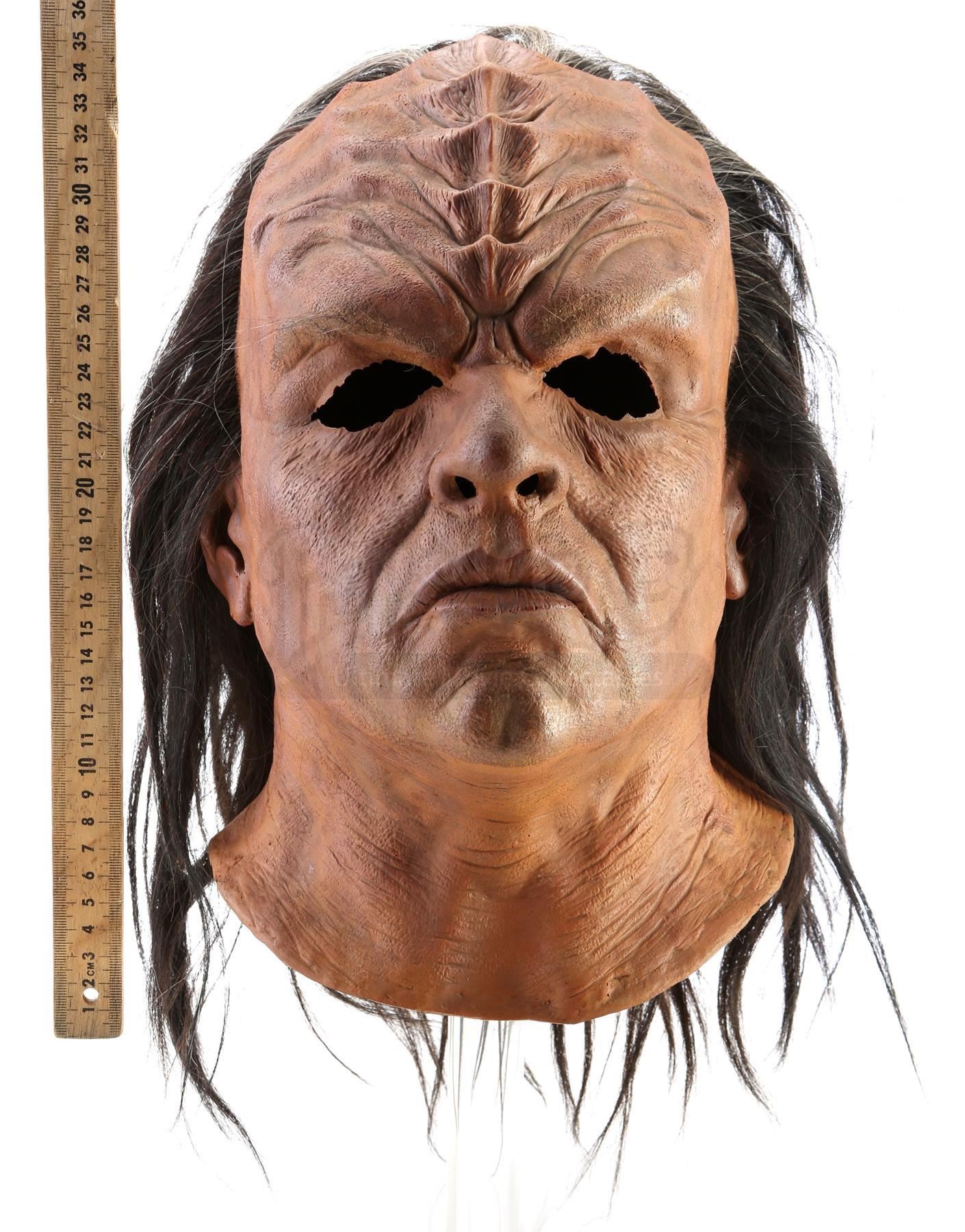 STAR TREK VI: THE UNDISCOVERED COUNTRY (1991) - Background Klingon Mask - A background Klingon mask from Nicholas Meyer's Star Trek VI: The Undiscovered Country. After a crisis put the future of the Klingons in peril, Captain Kirk (William Shatner) and his crew were tasked to make peace with their once bitter rivals.