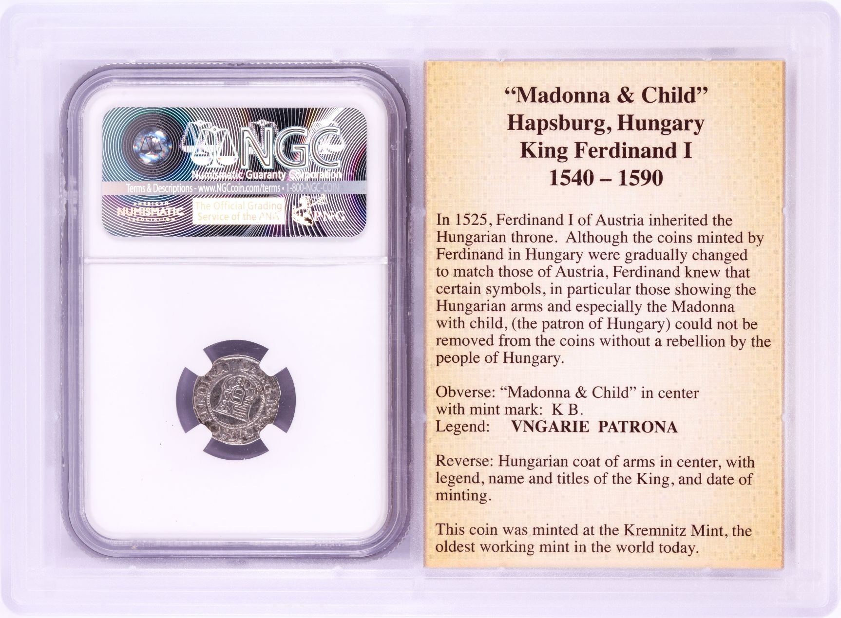One 1540 KB Hungary Denar 'Madonna and Child' Coin NGC XF45 w/ Story Box.