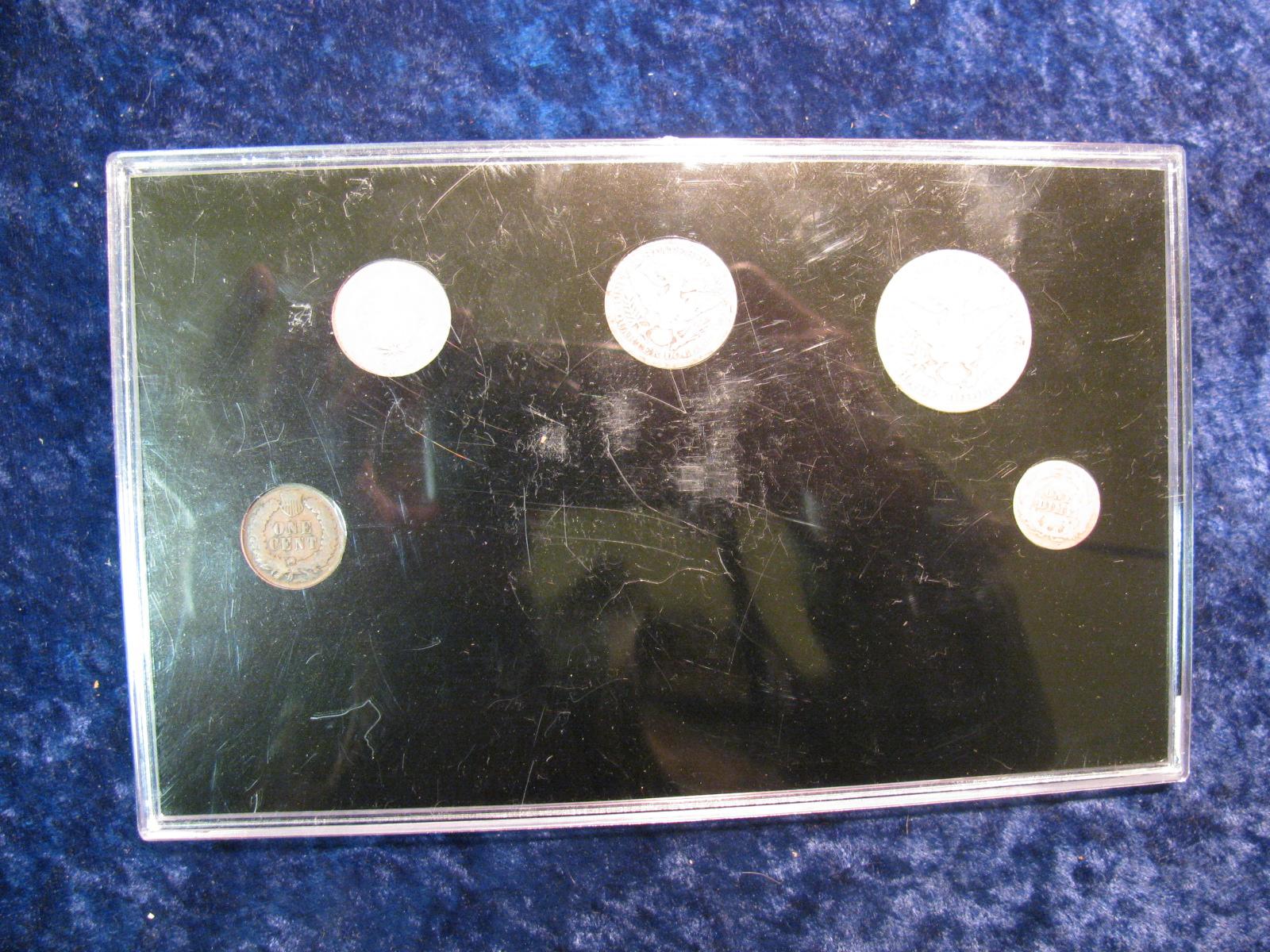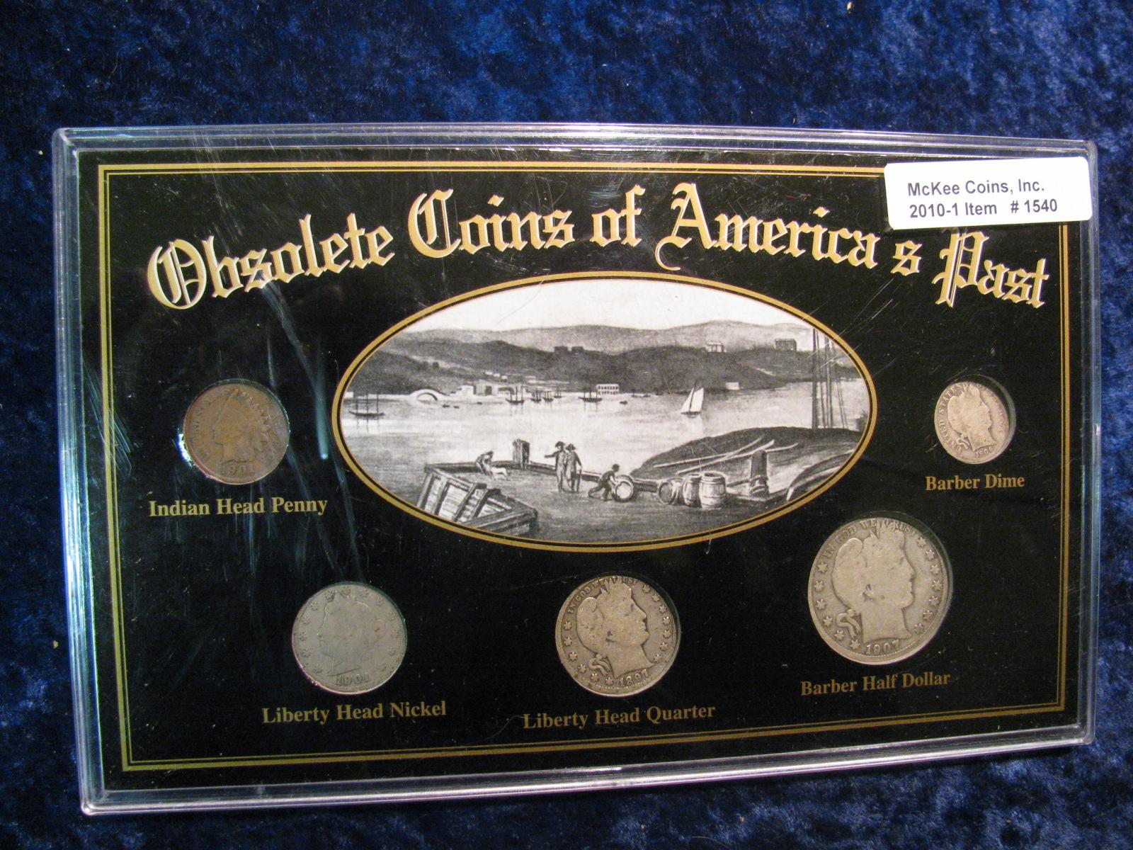 1540. Obsolete Coins Of America's Past Type Set.1901 Cent,1901 Nickel,1906 Dime,1897 Quarter,1907 Half Dollar In Case.
