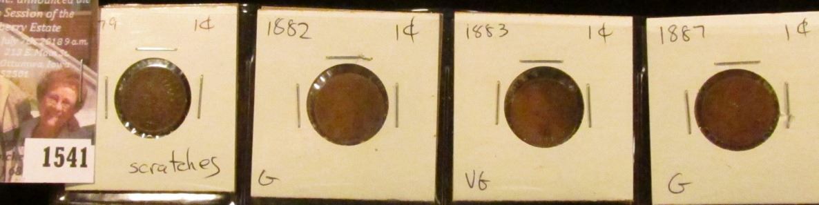 1879 VG scratches, 1882 Good, 1883 VG, & 1887 Good Indian Head Cents.