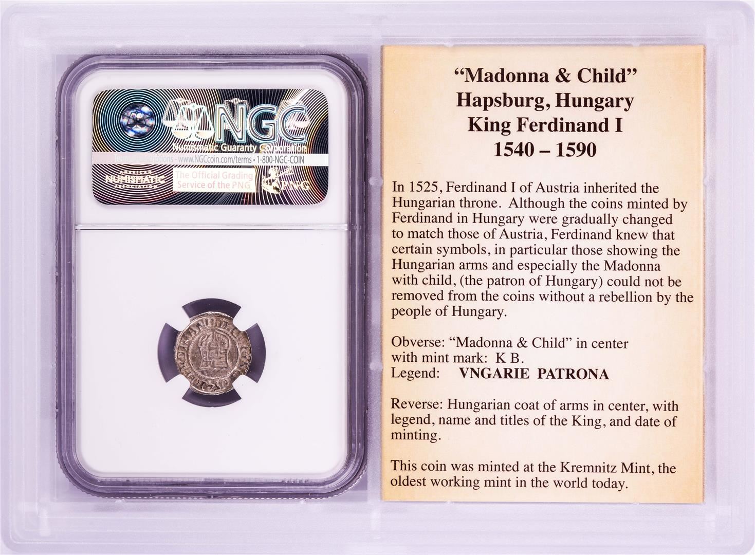 1541 KB Hungary Denar 'Madonna and Child' Coin NGC AU58 w/ Story Box