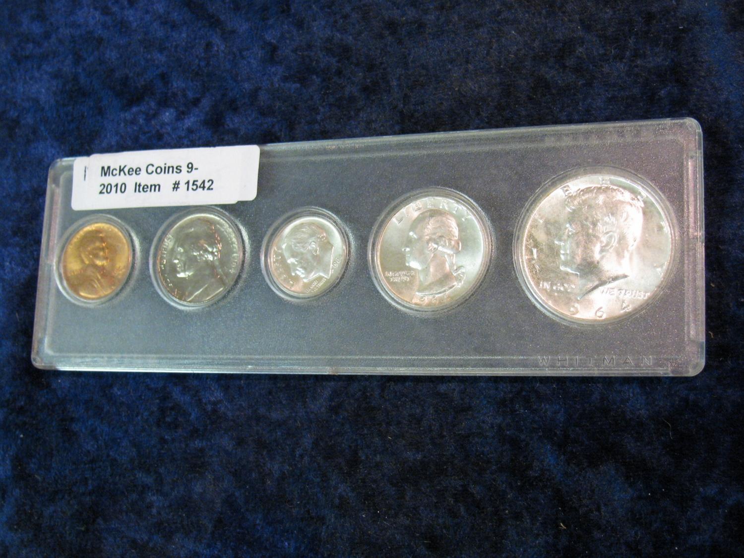 1542. 1964 U.S. Year Set in snaptight case. BU. Cent to Half dollar.