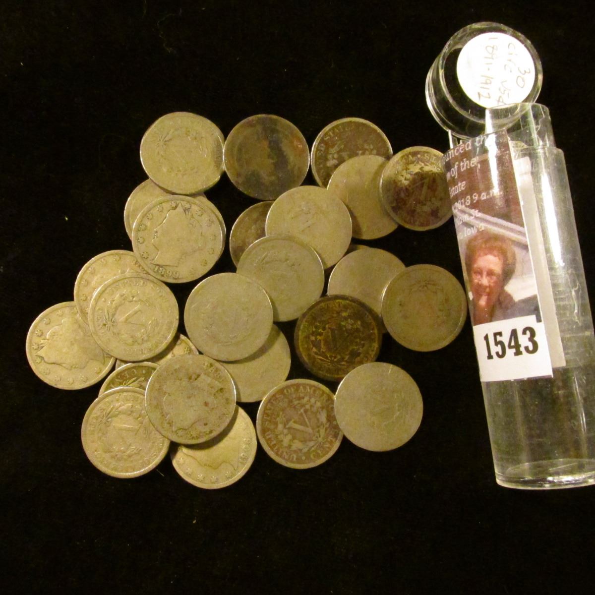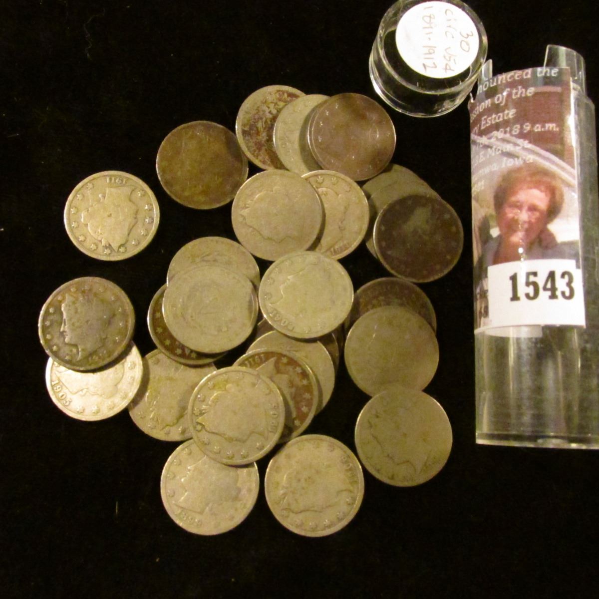 (30) Circulated Liberty "V" Nickels 1891-1912.