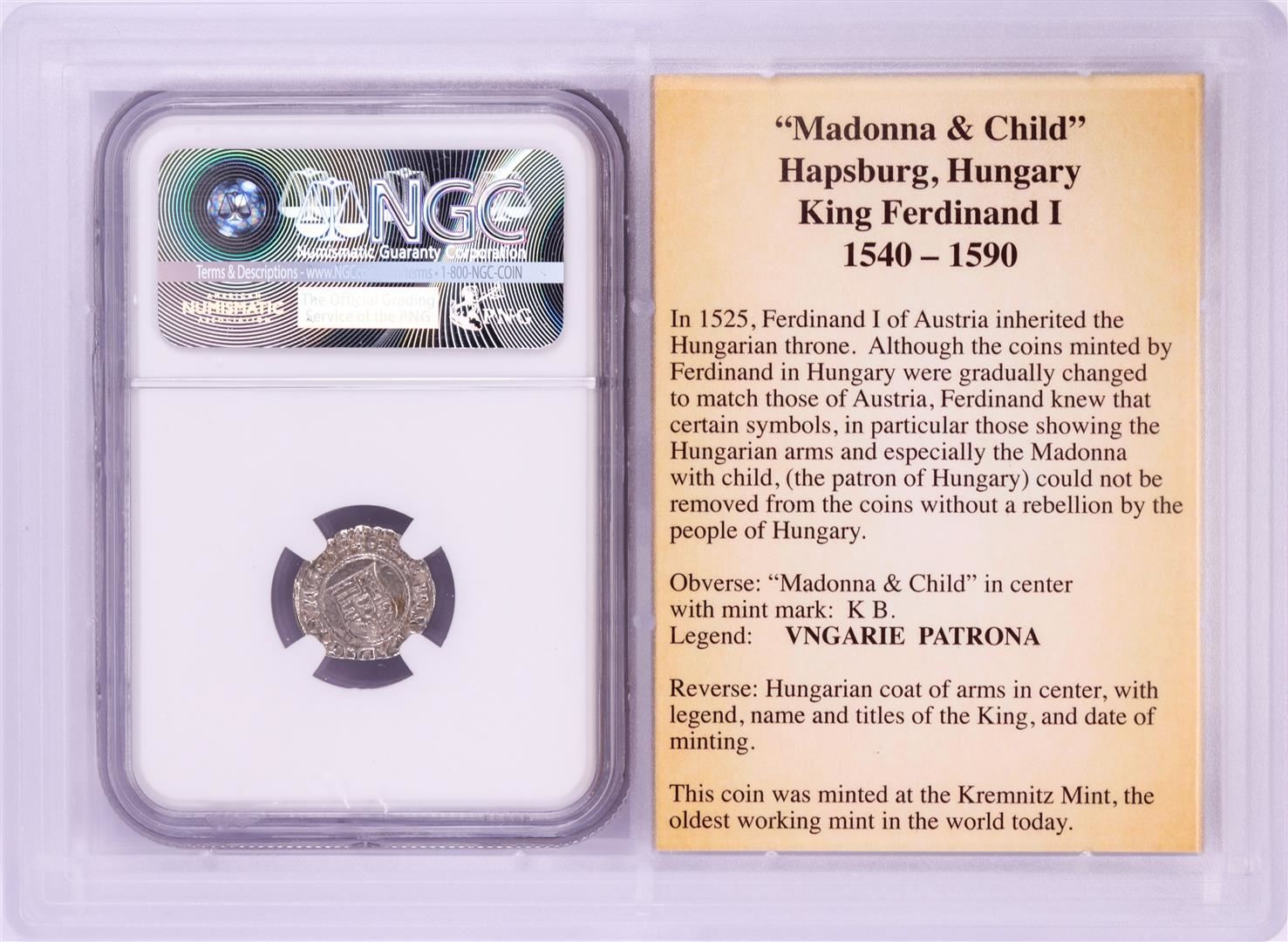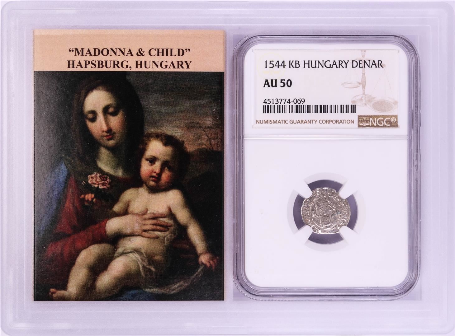 One 1544 KB Hungary Denar 'Madonna and Child' Coin NGC AU50 w/ Story Box. NGC Certified.
