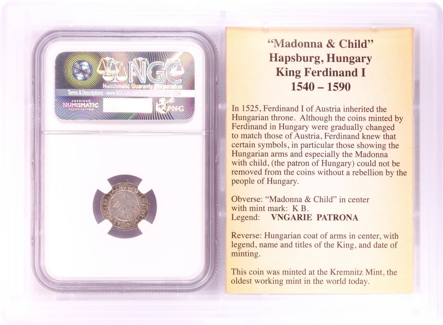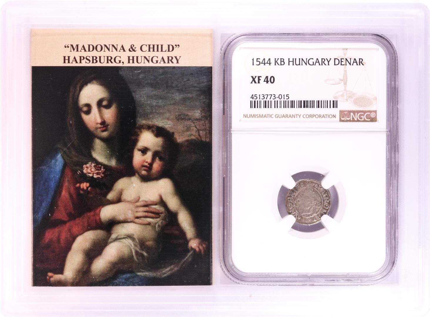 One 1544 KB Hungary Denar 'Madonna and Child' Coin NGC XF40 w/ Story Box. NGC Certified.