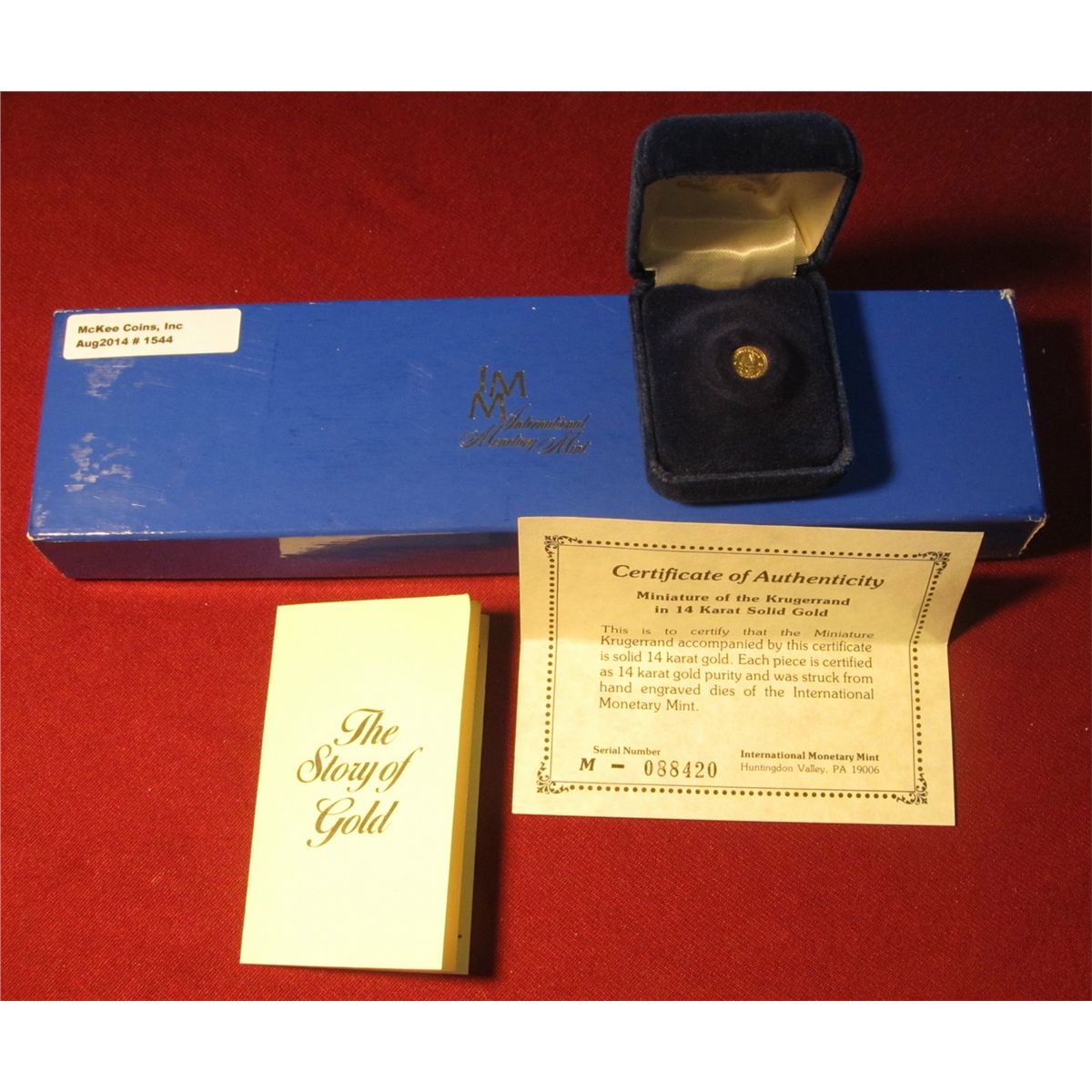 1544. Miniature of the Krugerrand in 14K Solid Gold with Certicate of Authenticity.