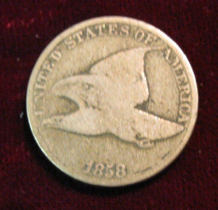 1545. 1858 Large Letters Flying Eagle Cent. VG-8.