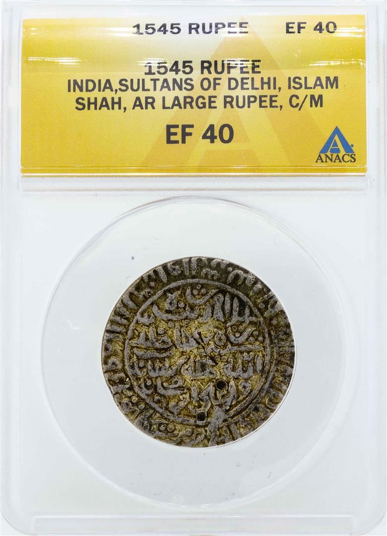 One 1545 India Rupee Sultans of Delhi Coin ANACS EF40. ANACS Certified.