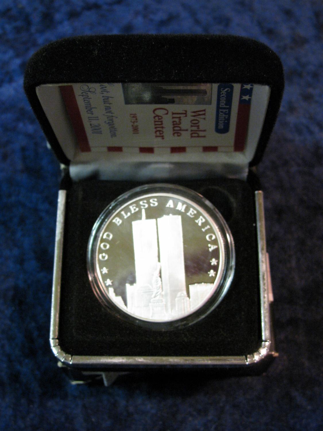1545. Sept. 11, 2001 "World Trade Center" Proof One Ounce .999 fine Silver Round in a velvet-lined case.