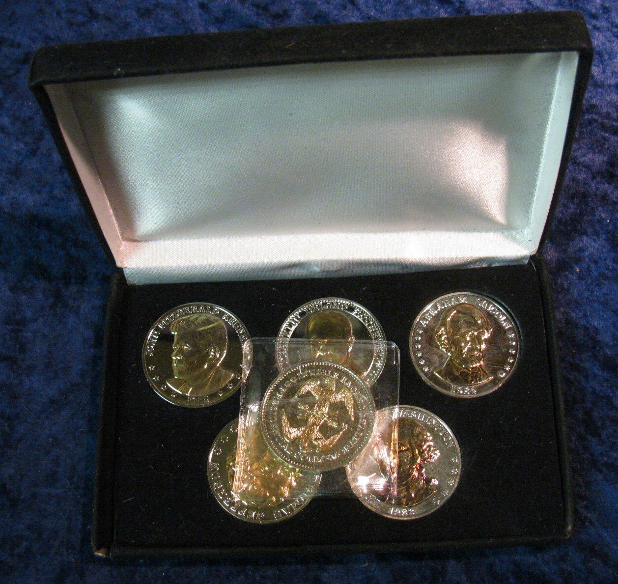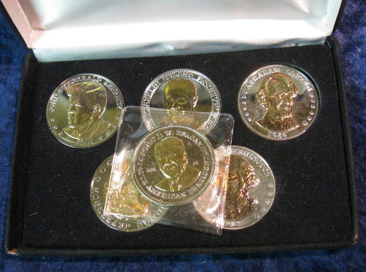 1545. Set of 6 Gold Highlighted Presidential Coins.