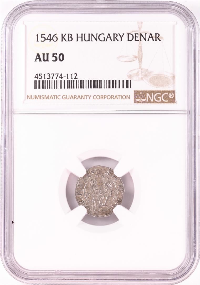 One 1546 KB Hungary Denar 'Madonna and Child' Coin NGC AU50. NGC Certified.