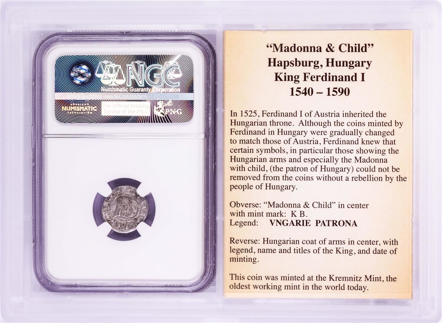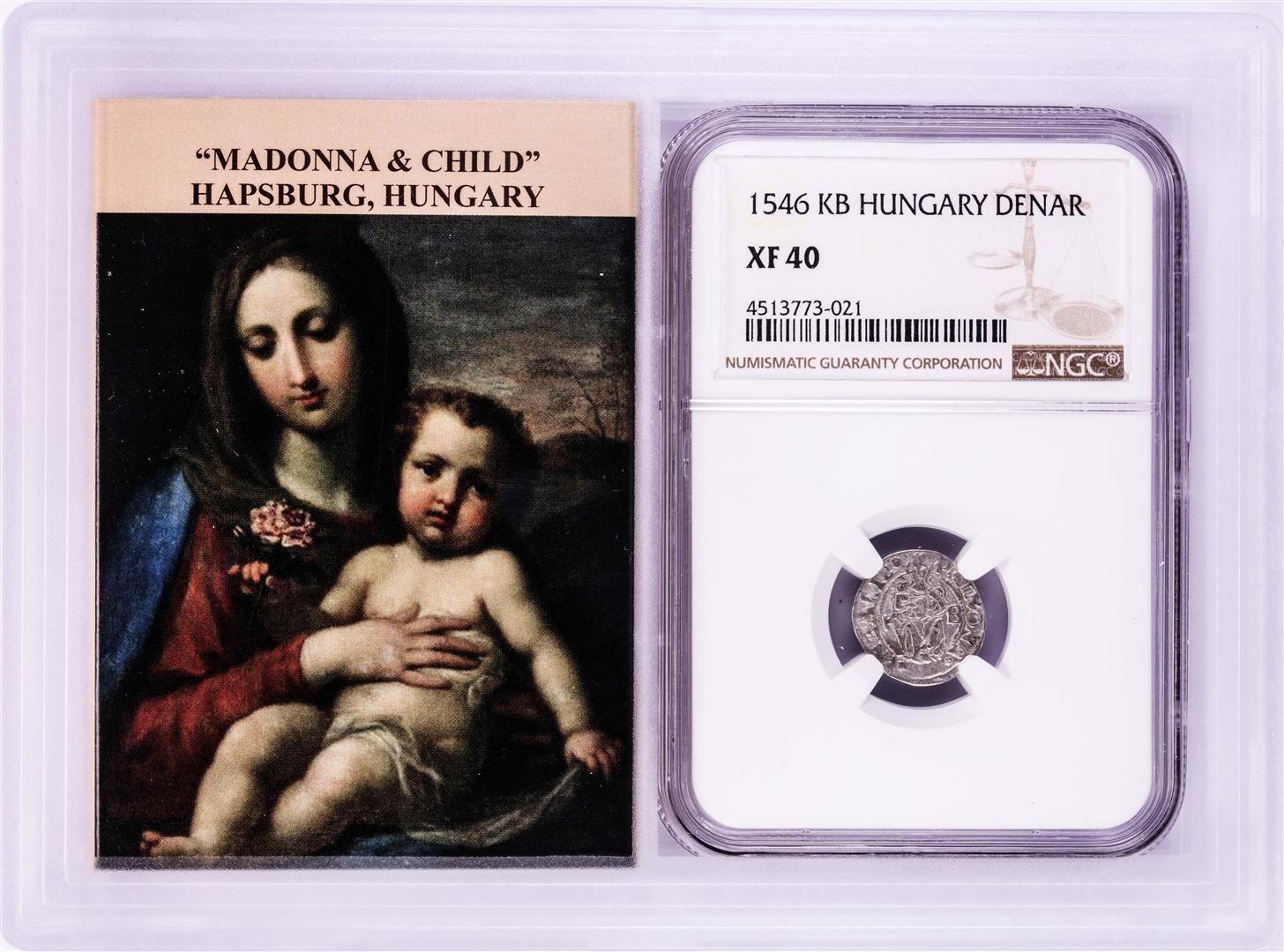 1546 KB Hungary Denar 'Madonna and Child' Coin NGC XF40 w/ Story Box