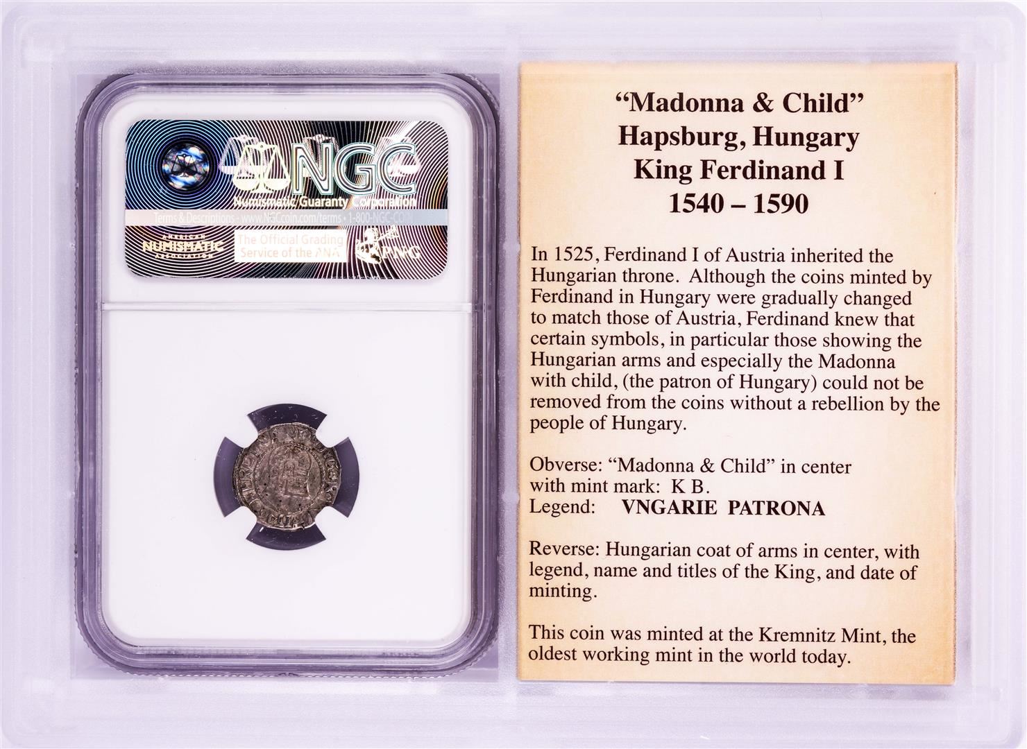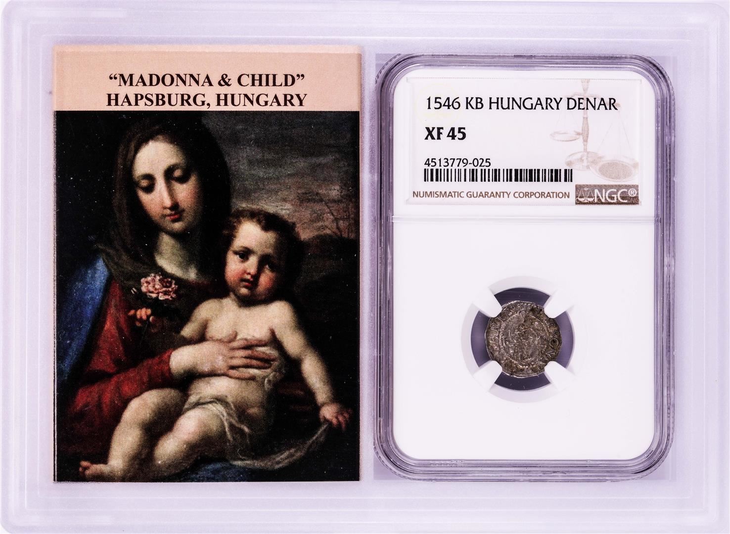 1546 KB Hungary Denar 'Madonna and Child' Coin NGC XF45 w/ Story Box