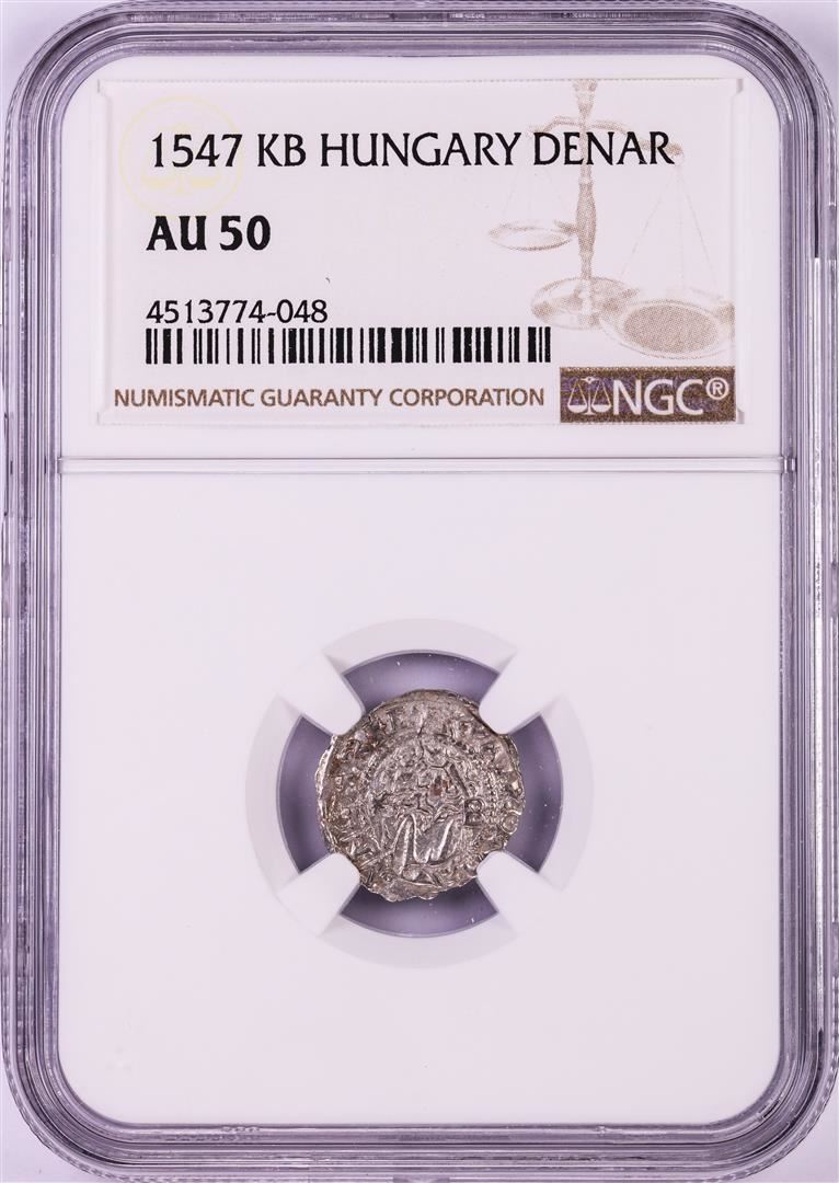 One 1547 KB Hungary Denar 'Madonna and Child' Coin NGC AU50. NGC Certified.