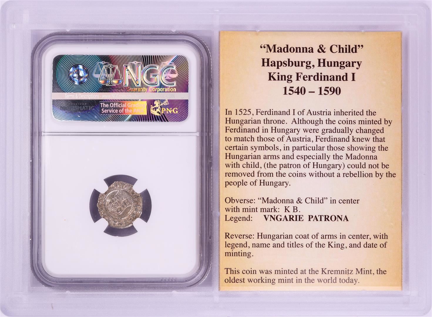 One 1547 KB Hungary Denar 'Madonna and Child' Coin NGC XF45 w/ Story Box. NGC Certified.