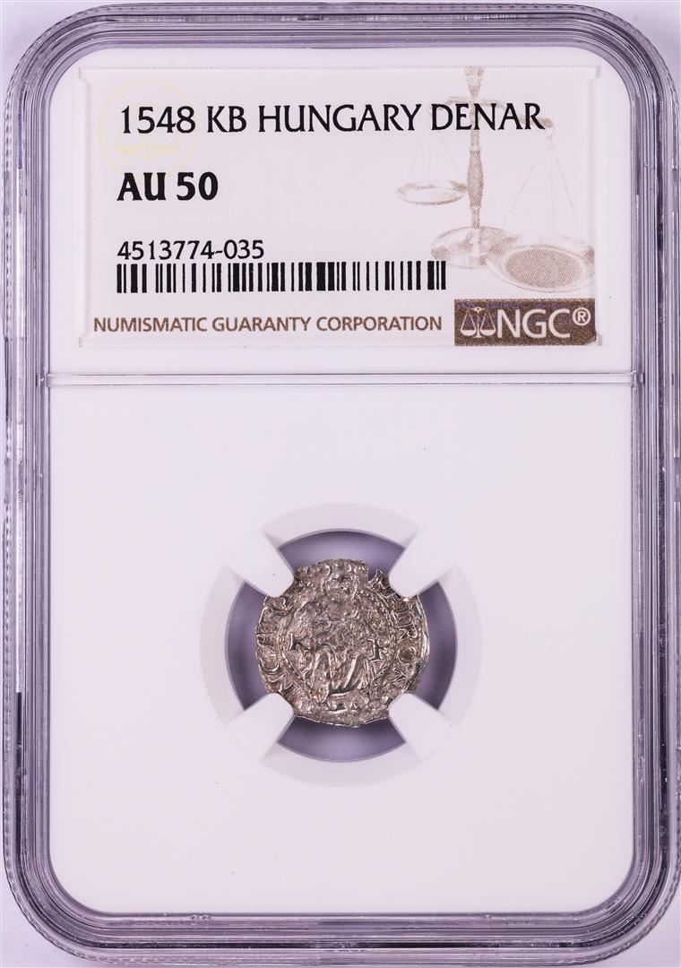 One 1548 KB Hungary Denar 'Madonna and Child' Coin NGC AU50. NGC Certified.