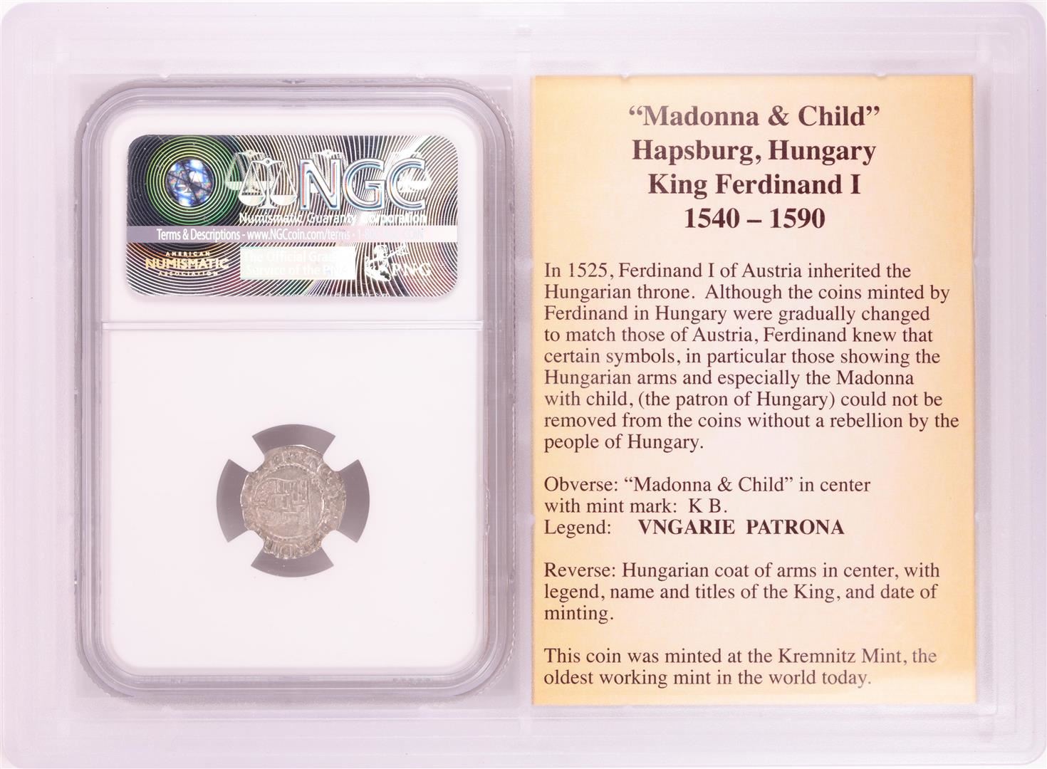 One 1548 KB Hungary Denar 'Madonna and Child' Coin NGC XF45 w/ Story Box. NGC Certified.
