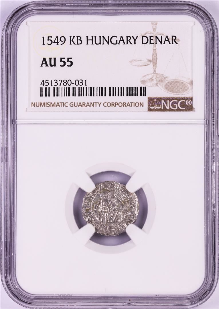 One 1549 KB Hungary Denar 'Madonna and Child' Coin NGC AU55. NGC Certified.