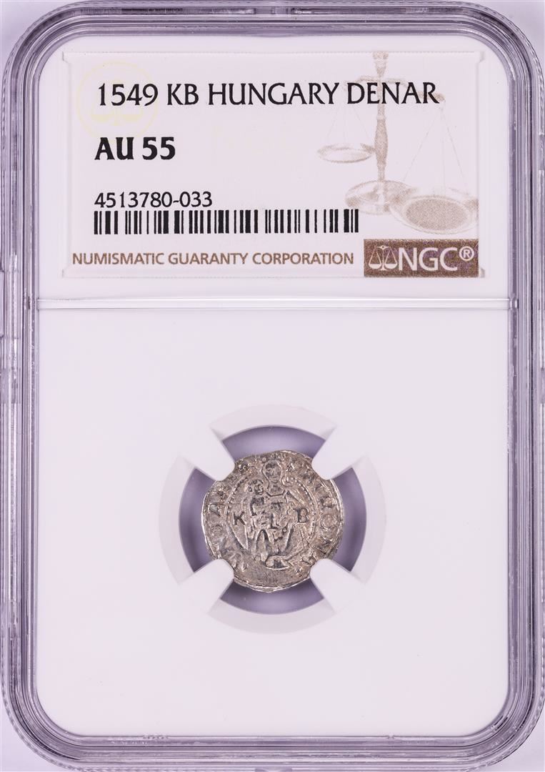 One 1549 KB Hungary Denar 'Madonna and Child' Coin NGC AU55. NGC Certified.