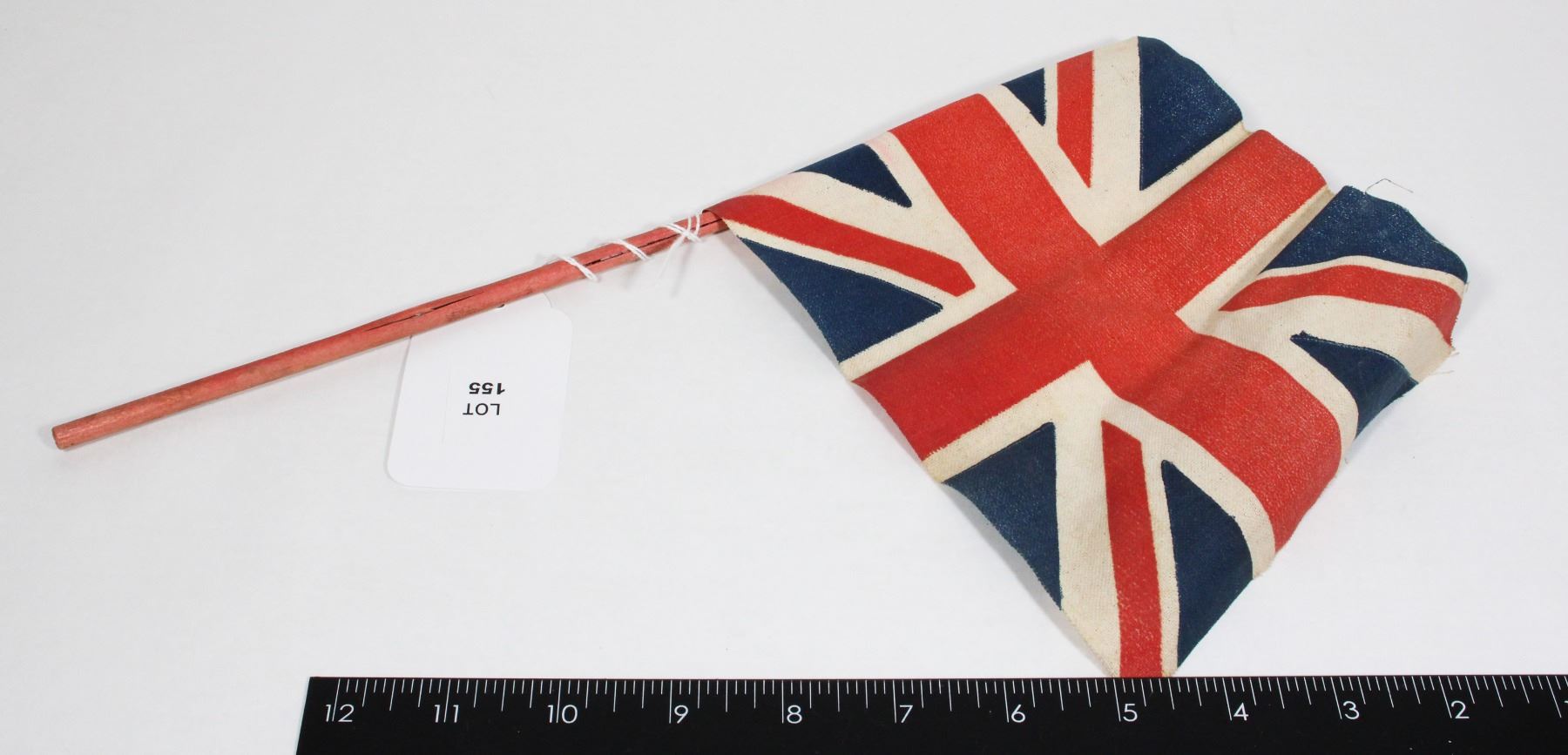 PATRIOTIC FLAG, STICK MEASURES 13 INCHES, FLAG 8 X 6 INCHES DOUBLE SIDED FLAG WORLD WAR TWO PATRIOTIC HOME FRONT