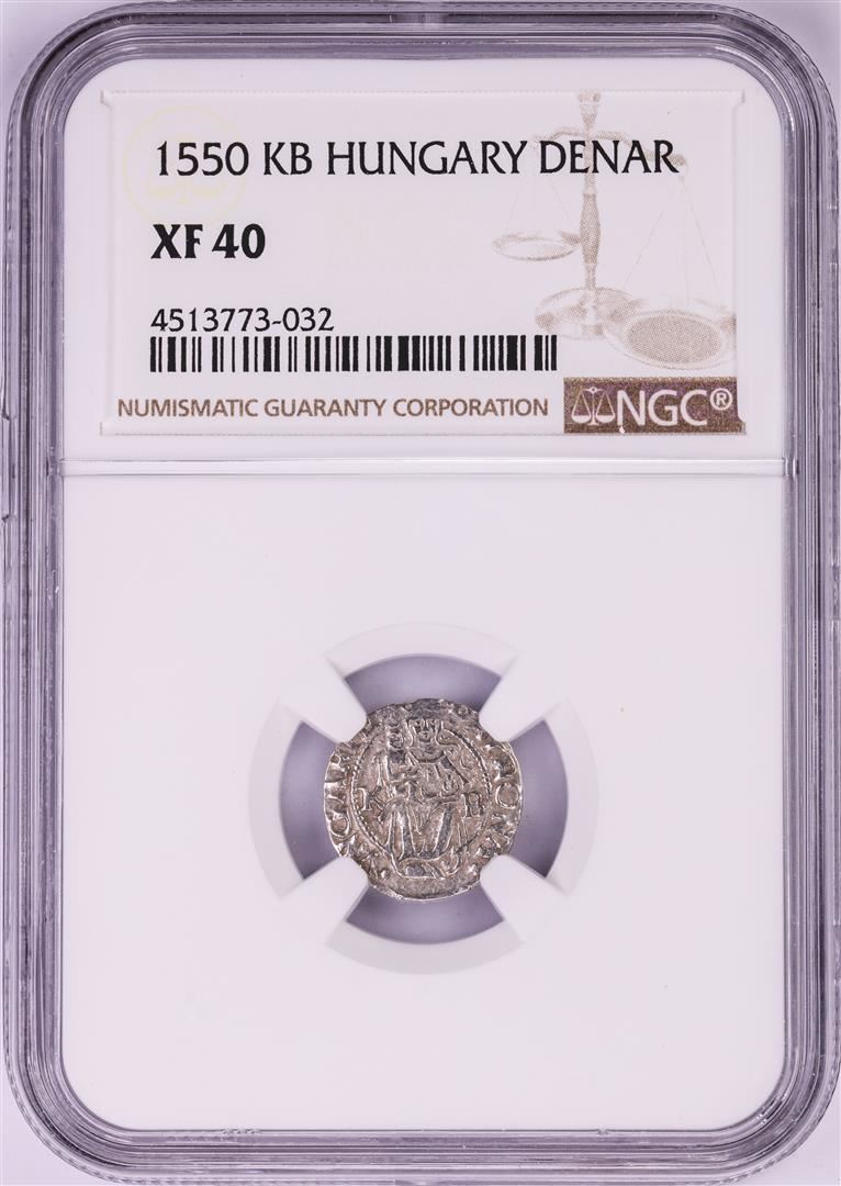 One 1550 KB Hungary Denar 'Madonna and Child' Coin NGC XF40. NGC Certified.