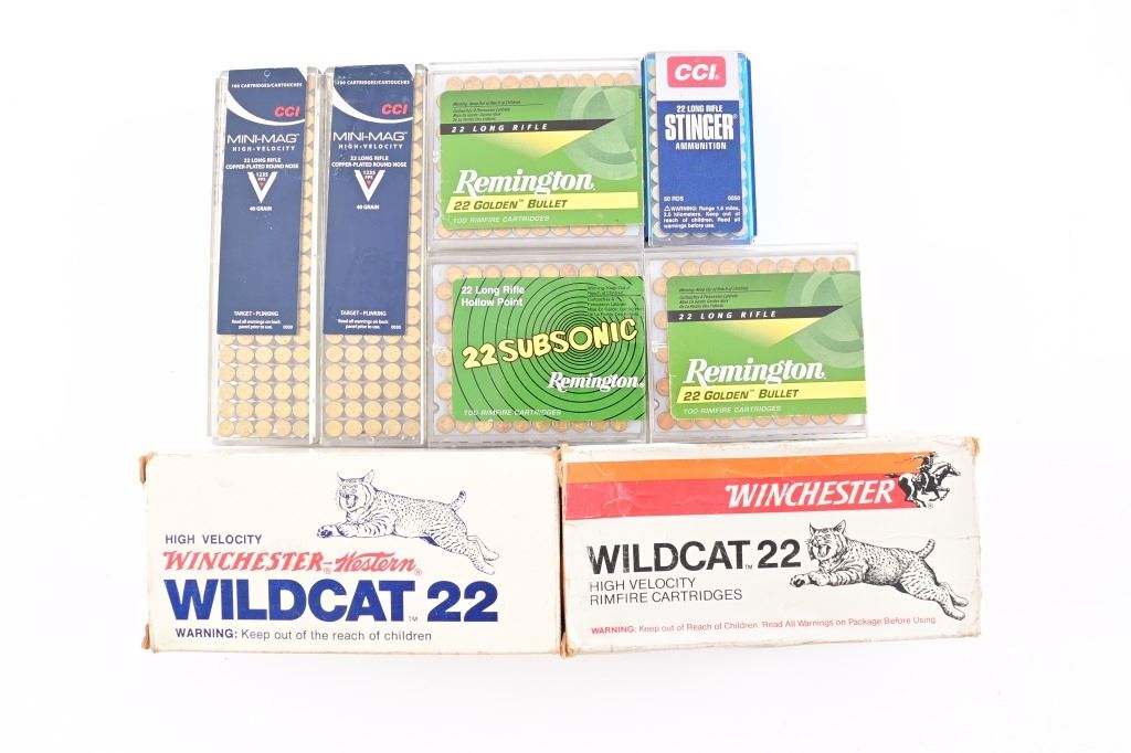 1,000 Rounds WW22LR. 300 Rounds PRN Remington. 200 Rounds CRN 40 Gr. CCI Mini- Mag. 50 Rounds CCI Stinger