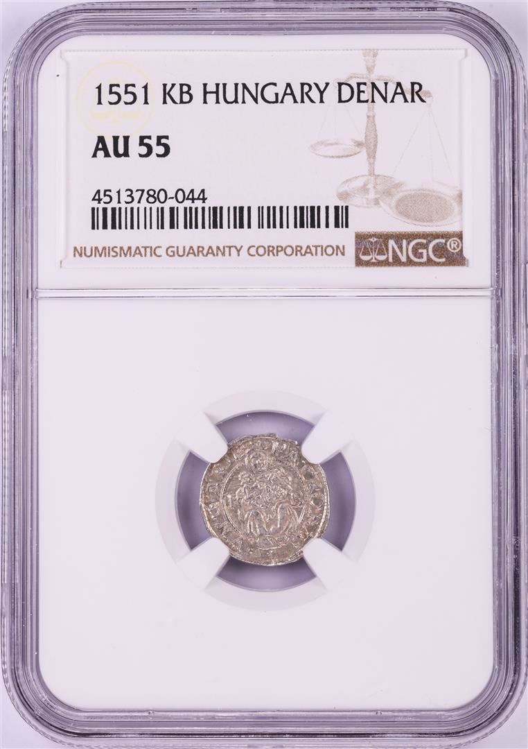 One 1551 KB Hungary Denar 'Madonna and Child' Coin NGC AU55. NGC Certified.