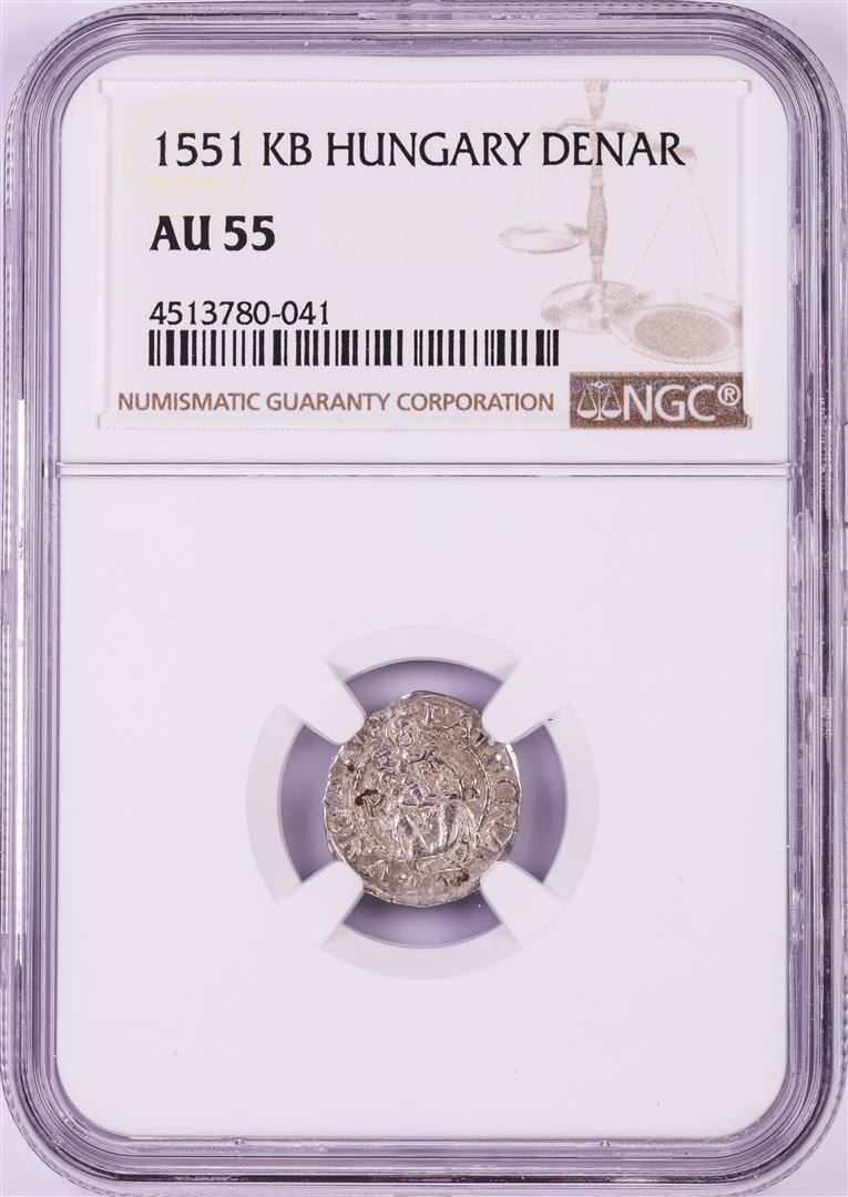 One 1551 KB Hungary Denar 'Madonna and Child' Coin NGC AU55. NGC Certified.