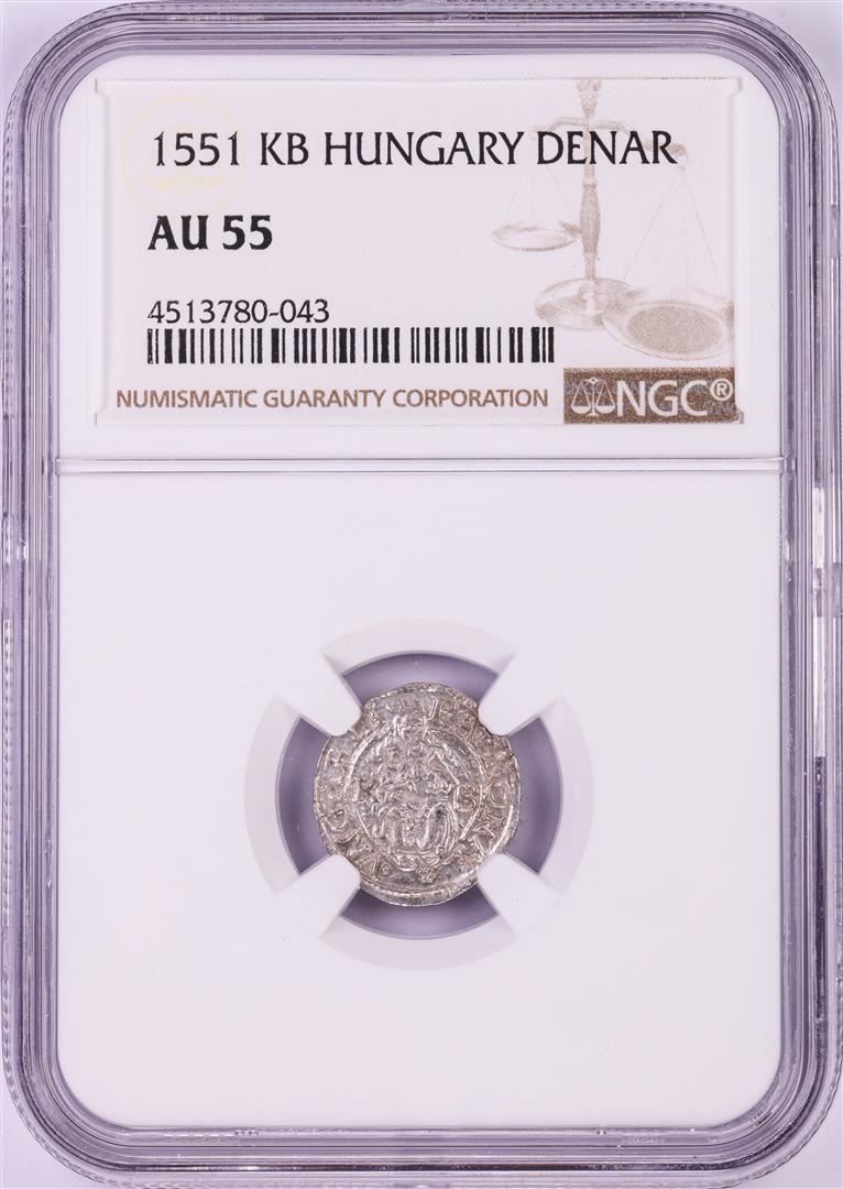 One 1551 KB Hungary Denar 'Madonna and Child' Coin NGC AU55. NGC Certified.