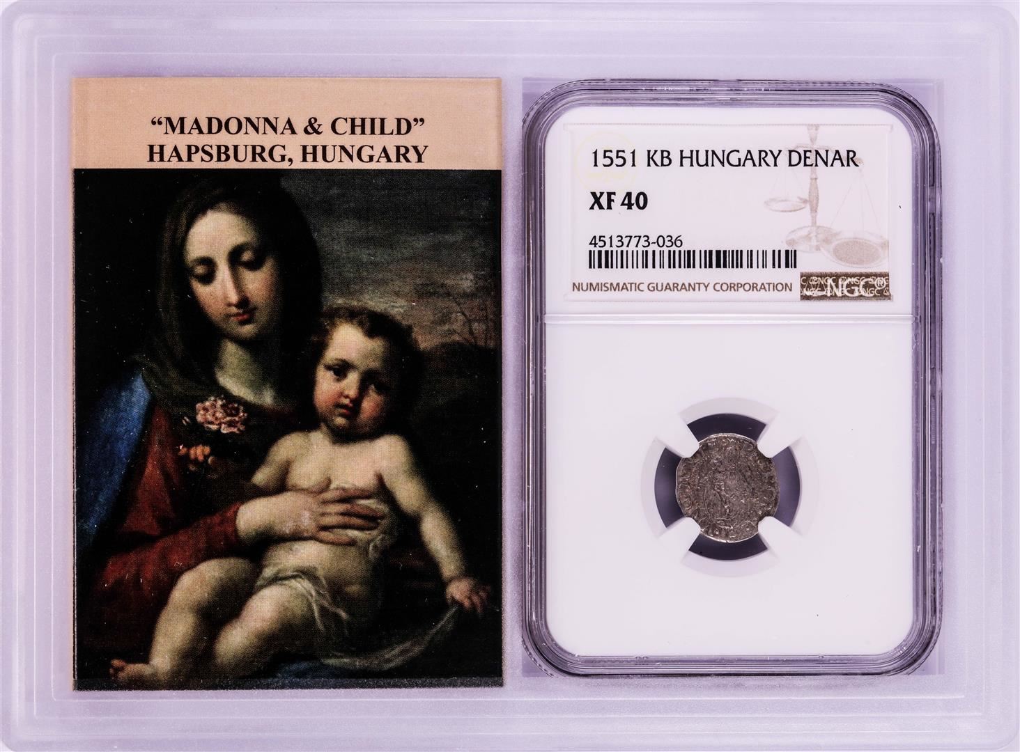 1551 KB Hungary Denar 'Madonna and Child' Coin NGC XF40 With Story Box