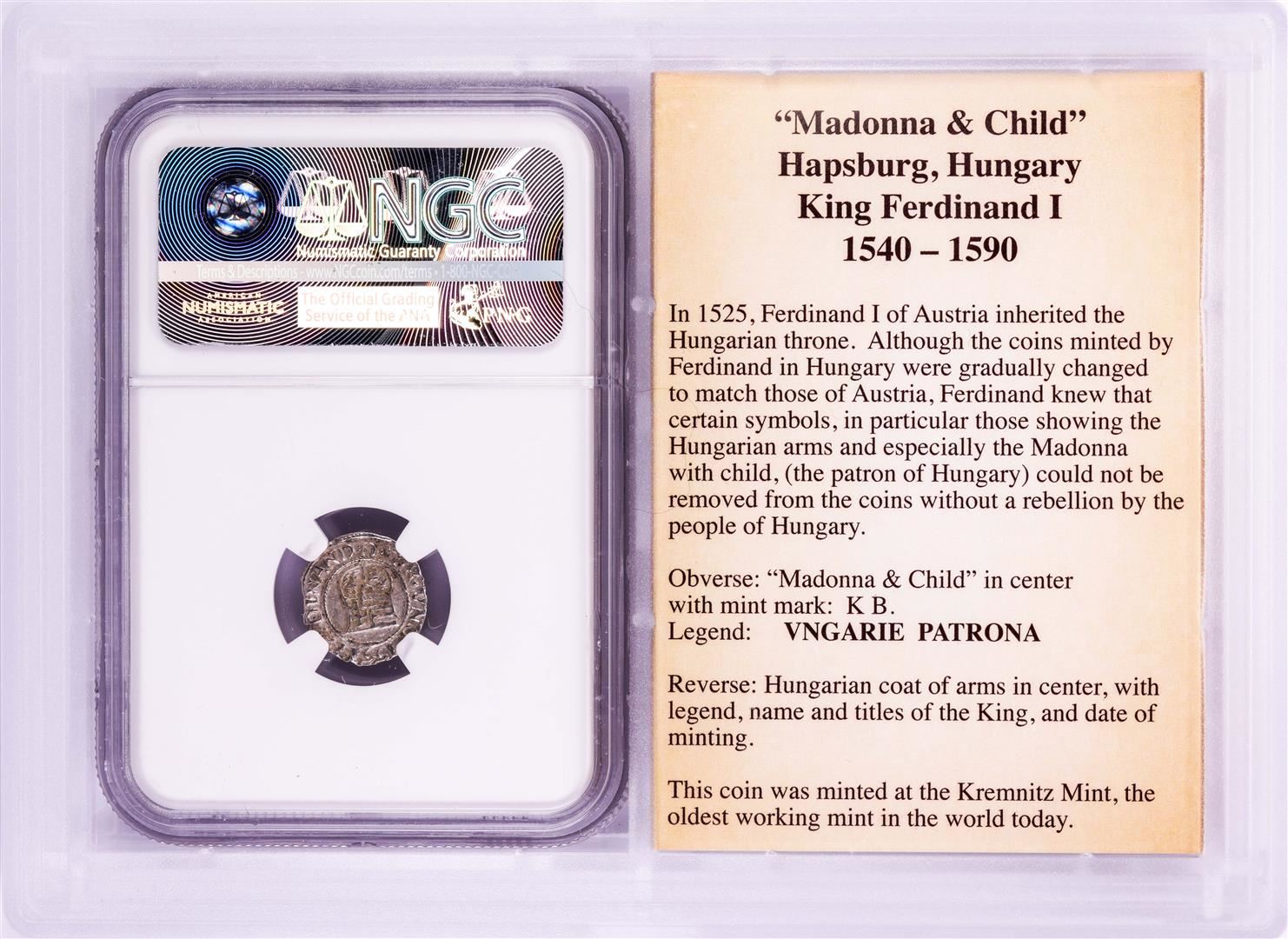 One 1551 KB Hungary Denar 'Madonna and Child' Coin NGC XF45 w/ Story Box. NGC Certified.