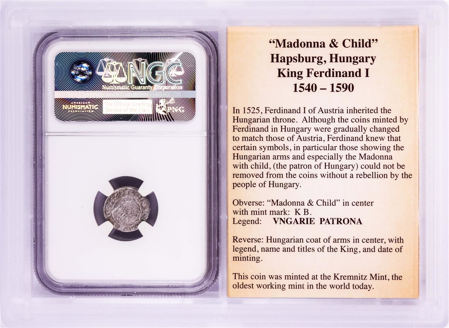 One 1552 KB Hungary Denar 'Madonna and Child' Coin NGC XF45 w/ Story Box. NGC Certified.