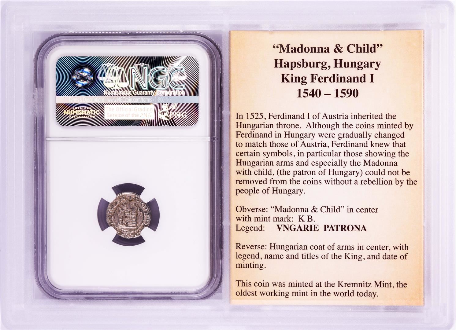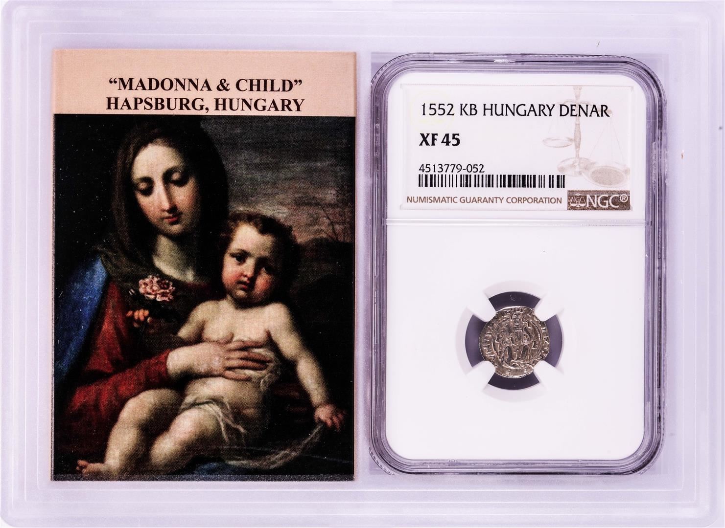 One 1552 KB Hungary Denar 'Madonna and Child' Coin NGC XF45 w/ Story Box. NGC Certified.