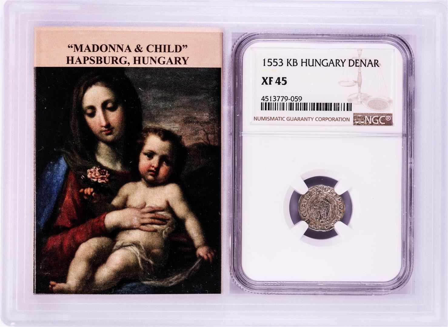 1553 KB Hungary Denar 'Madonna and Child' Coin NGC XF45 w/ Story Box