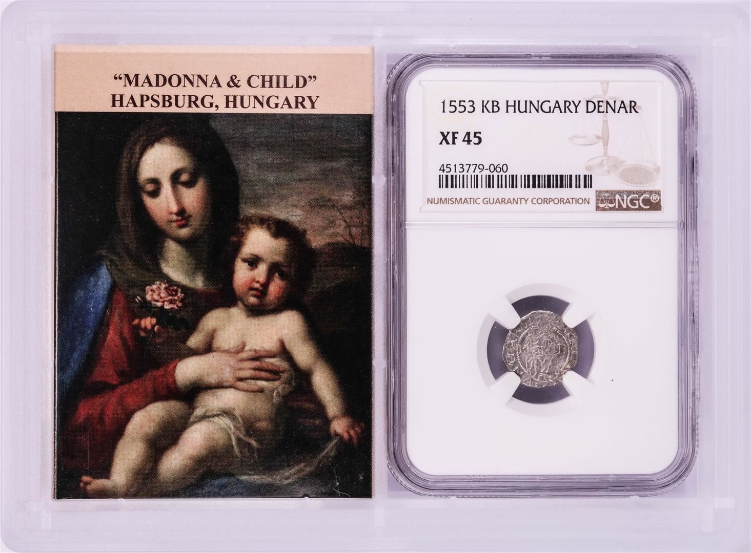 1553 KB Hungary Denar 'Madonna and Child' Coin NGC XF45 w/ Story Box
