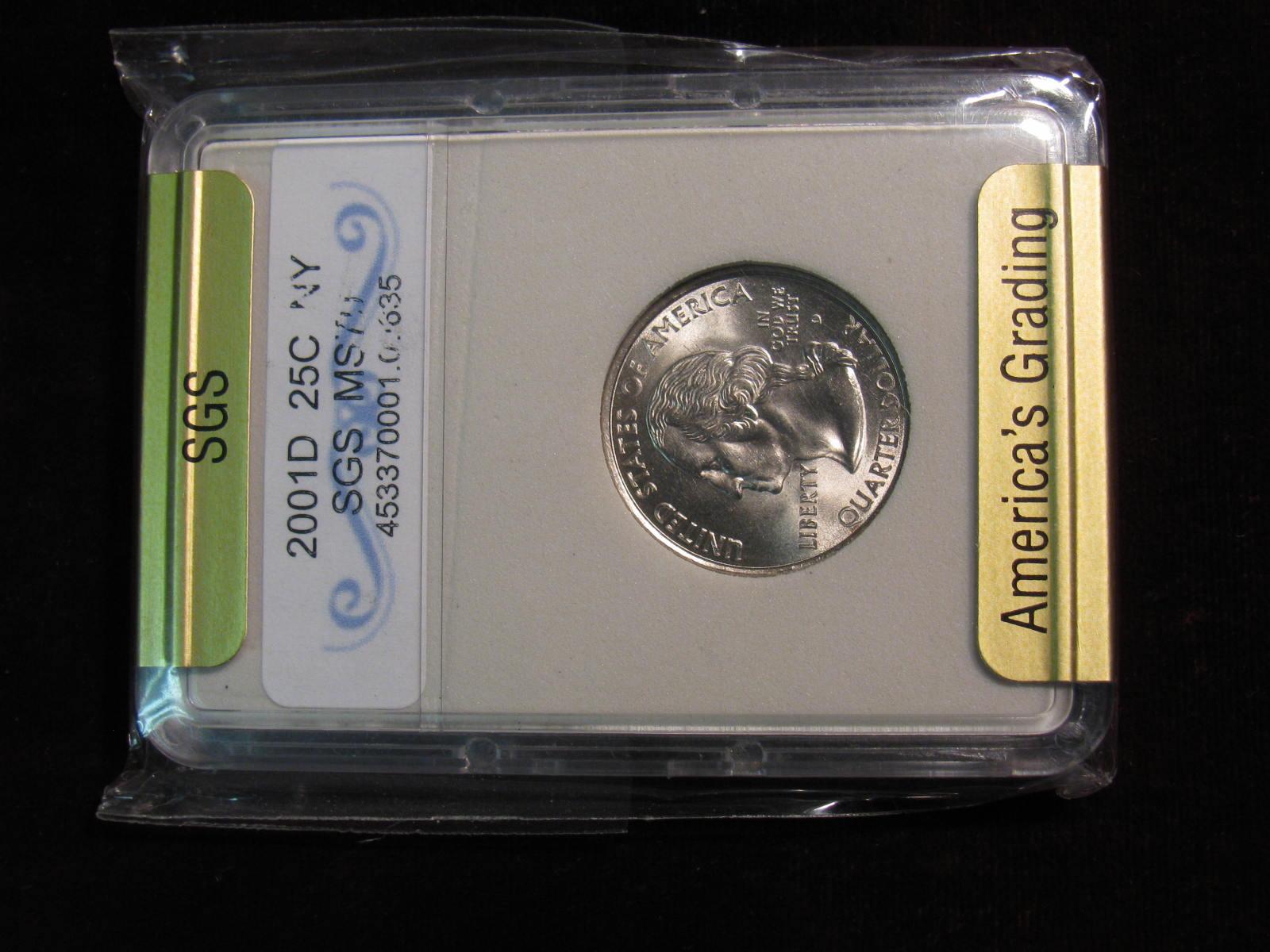 1555. 2001D Washington Quarter New York. Slabed SGS MS70.