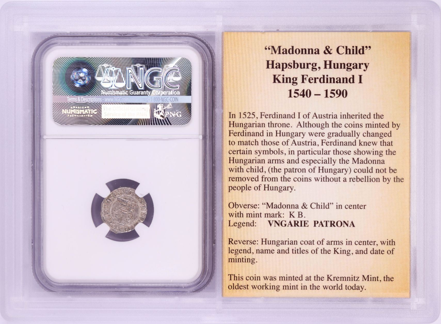 One 1555 KB Hungary Denar 'Madonna and Child' Coin NGC AU50 w/ Story Box.