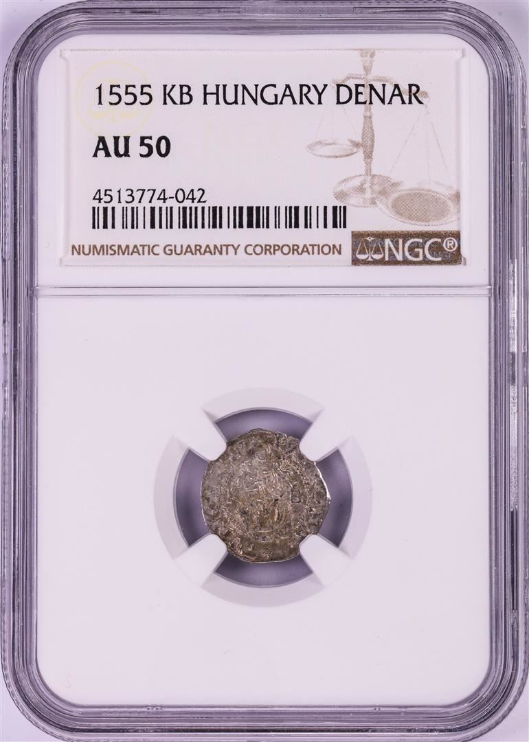 One 1555 KB Hungary Denar 'Madonna and Child' Coin NGC AU50. NGC Certified.
