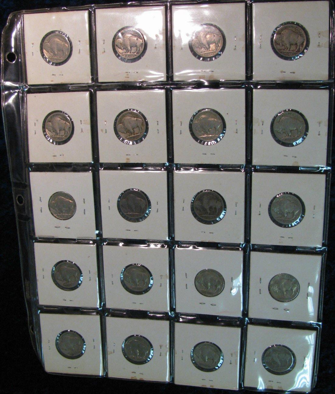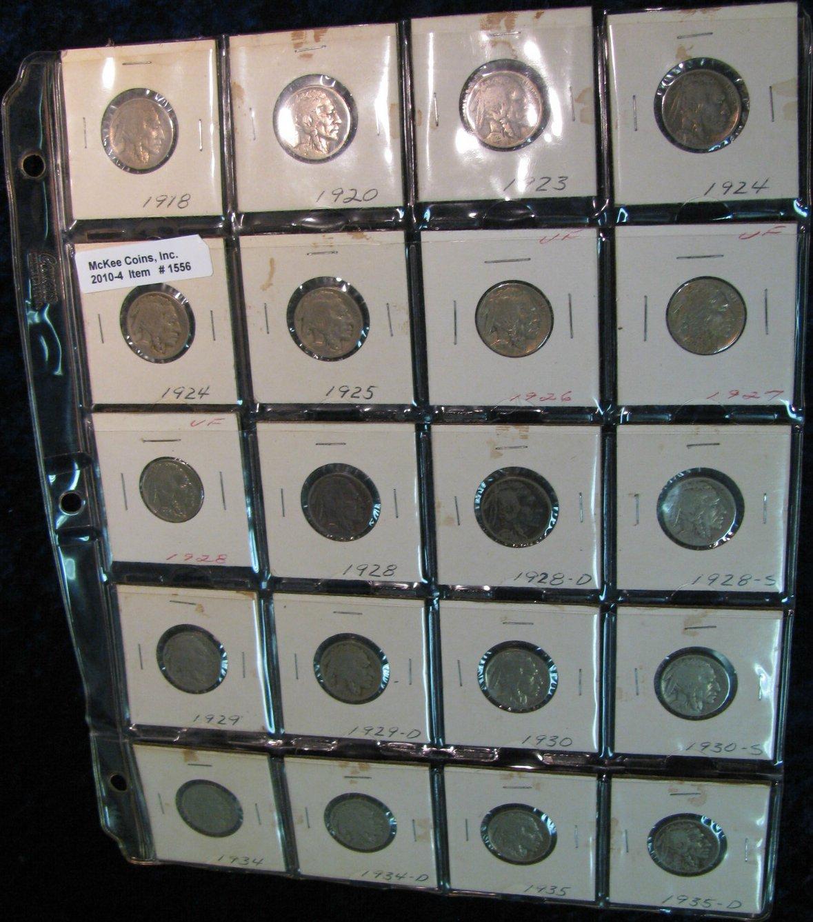 1556. Dealer Stock page full of Buffalo Nickels dating 1918-35. Grades up to VF.