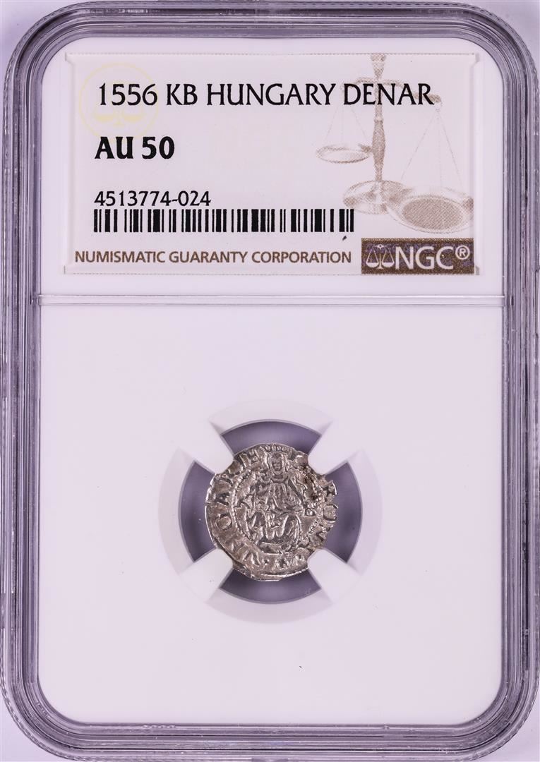One 1556 KB Hungary Denar 'Madonna and Child' Coin NGC AU50. NGC Certified.