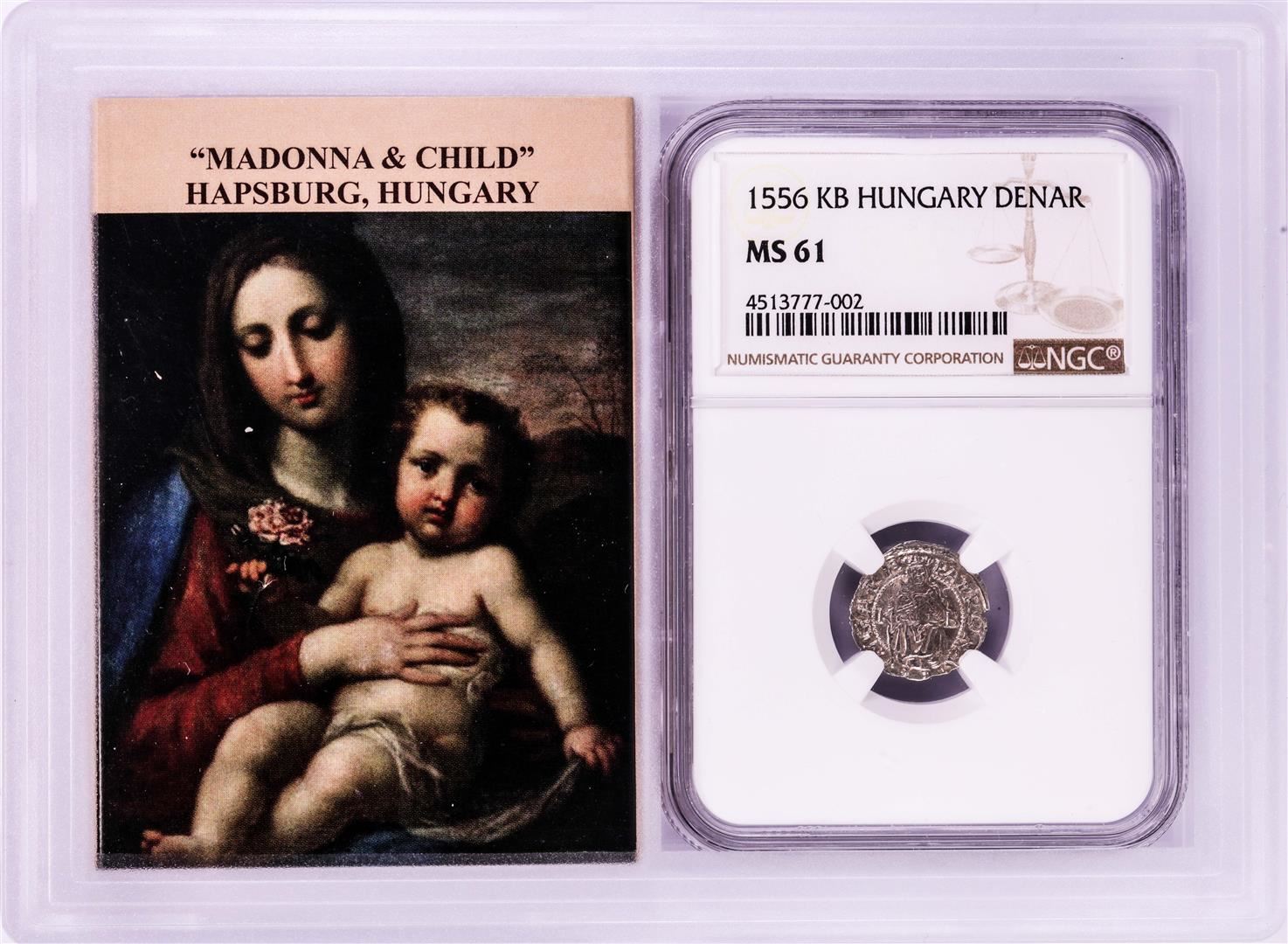 1556 KB Hungary Denar 'Madonna and Child' Coin NGC MS61 w/ Story Box