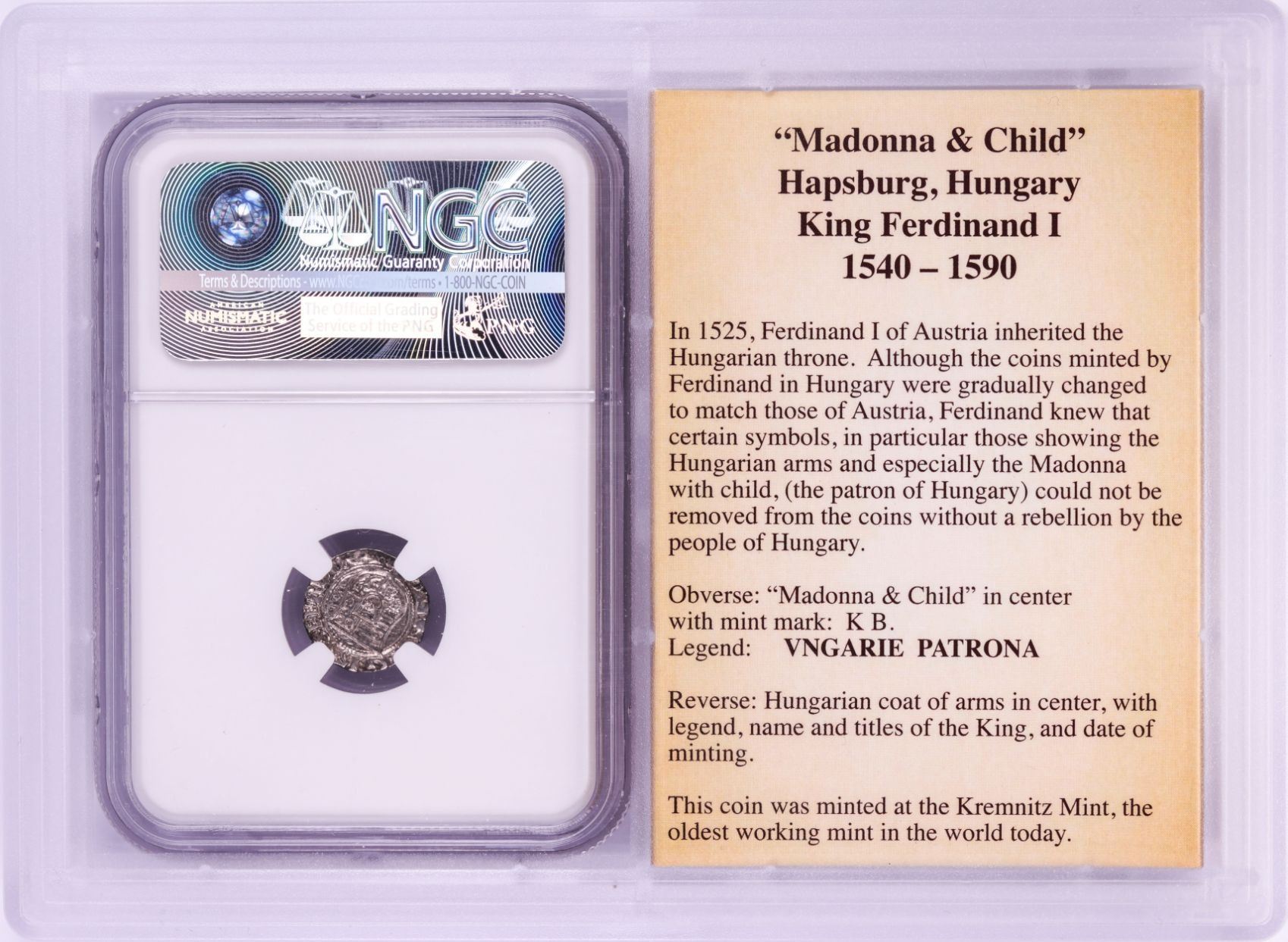 One 1556 KB Hungary Denar 'Madonna and Child' Coin NGC XF40 w/ Story Box.