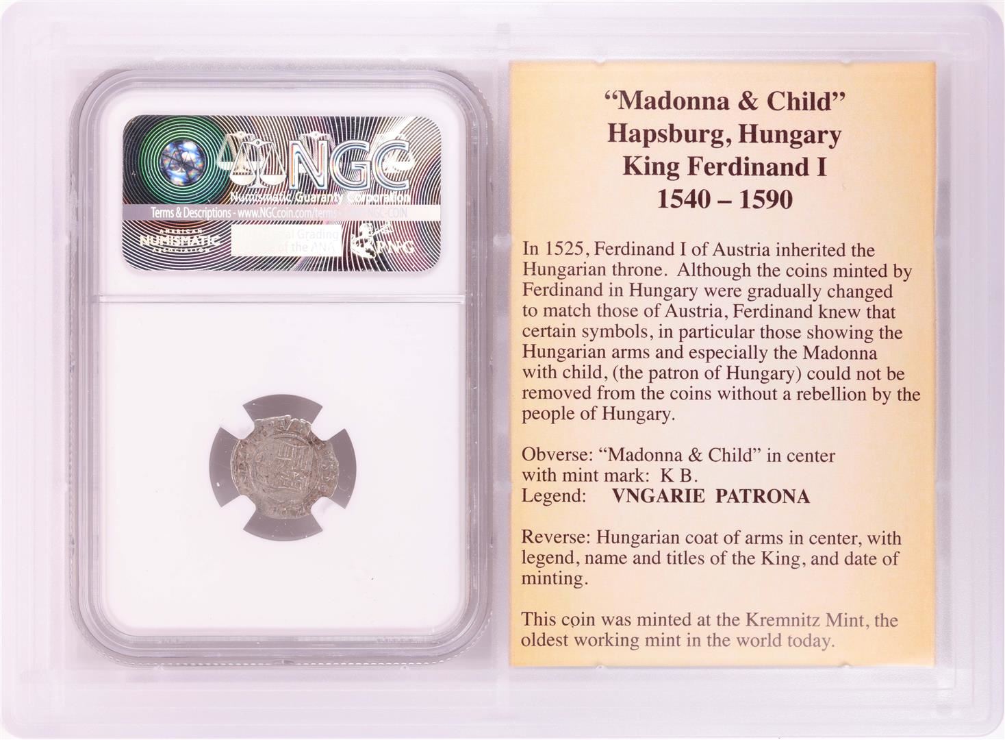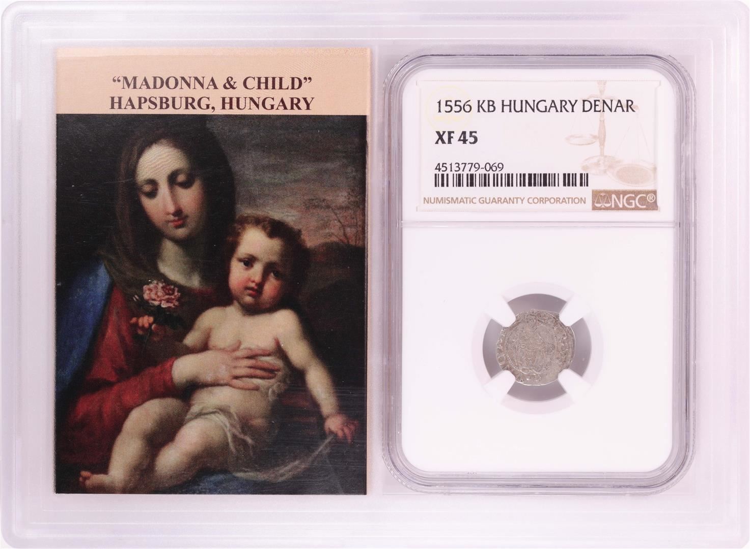 One 1556 KB Hungary Denar 'Madonna and Child' Coin NGC XF45 w/ Story Box. NGC Certified.