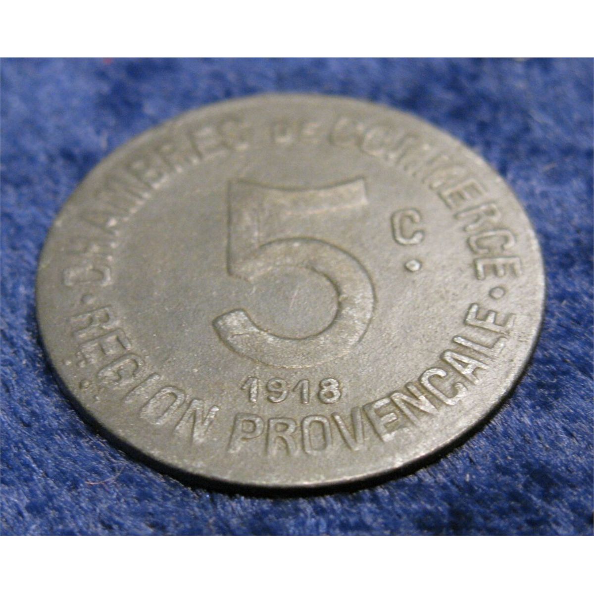 1557. 1918 Chamber of Commerce 5c Marseille Token. 25mm. Zinc. F-12.